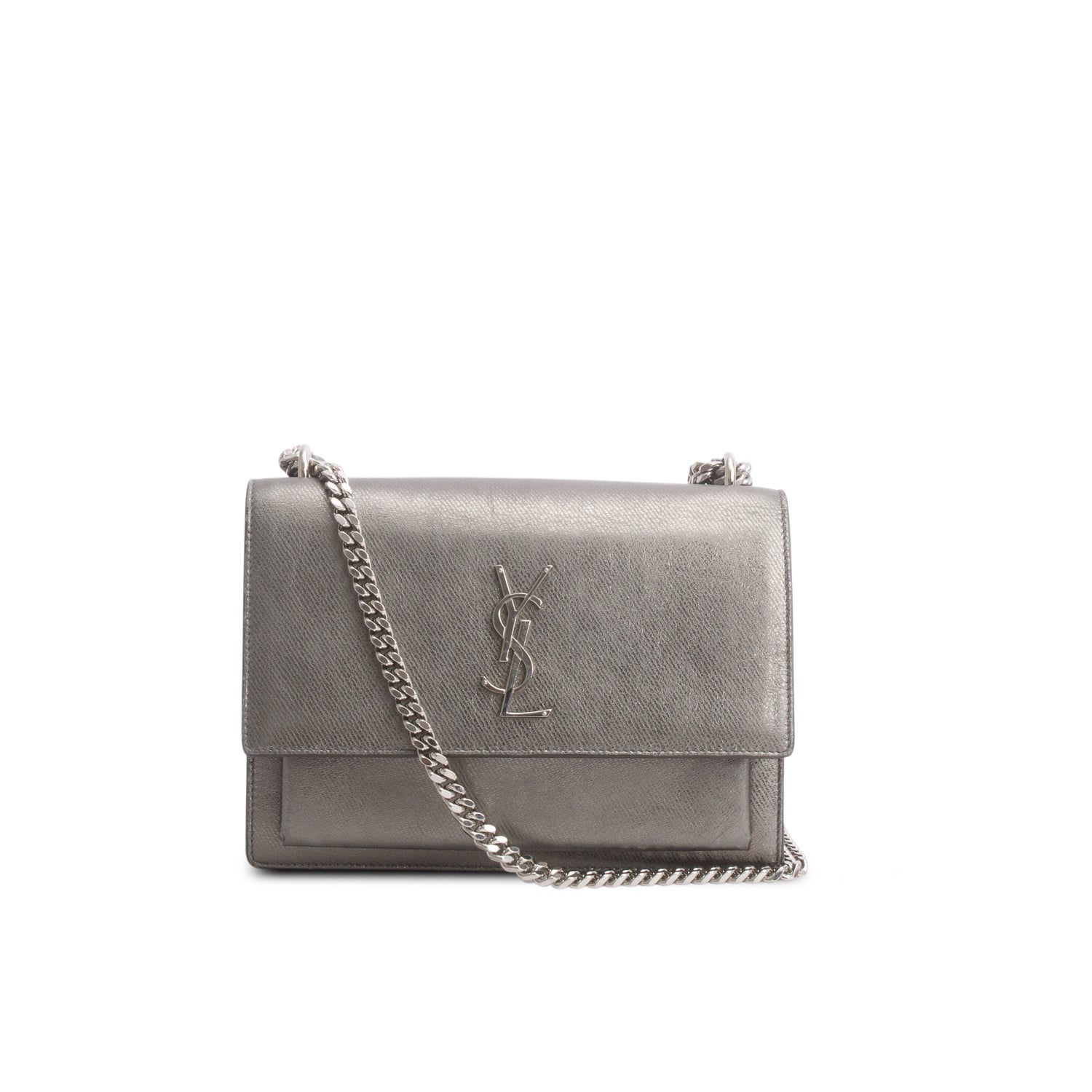 Grey Metallic Grain de Poudre Leather Medium Sunset Bag