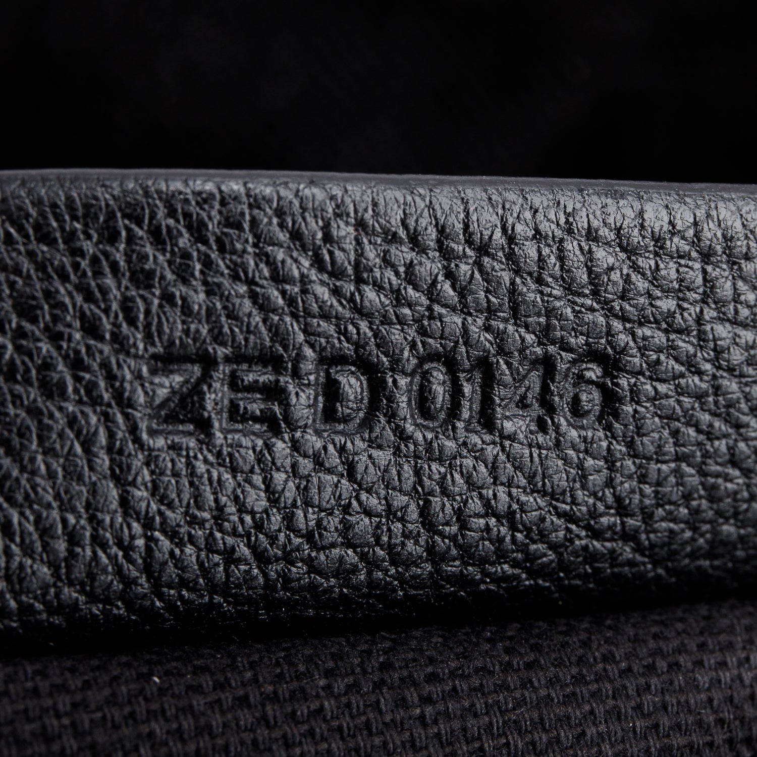 Condition: Very Good; slight scratches at exterior leather; minor scuffing at exterior corners and creasing at strap.