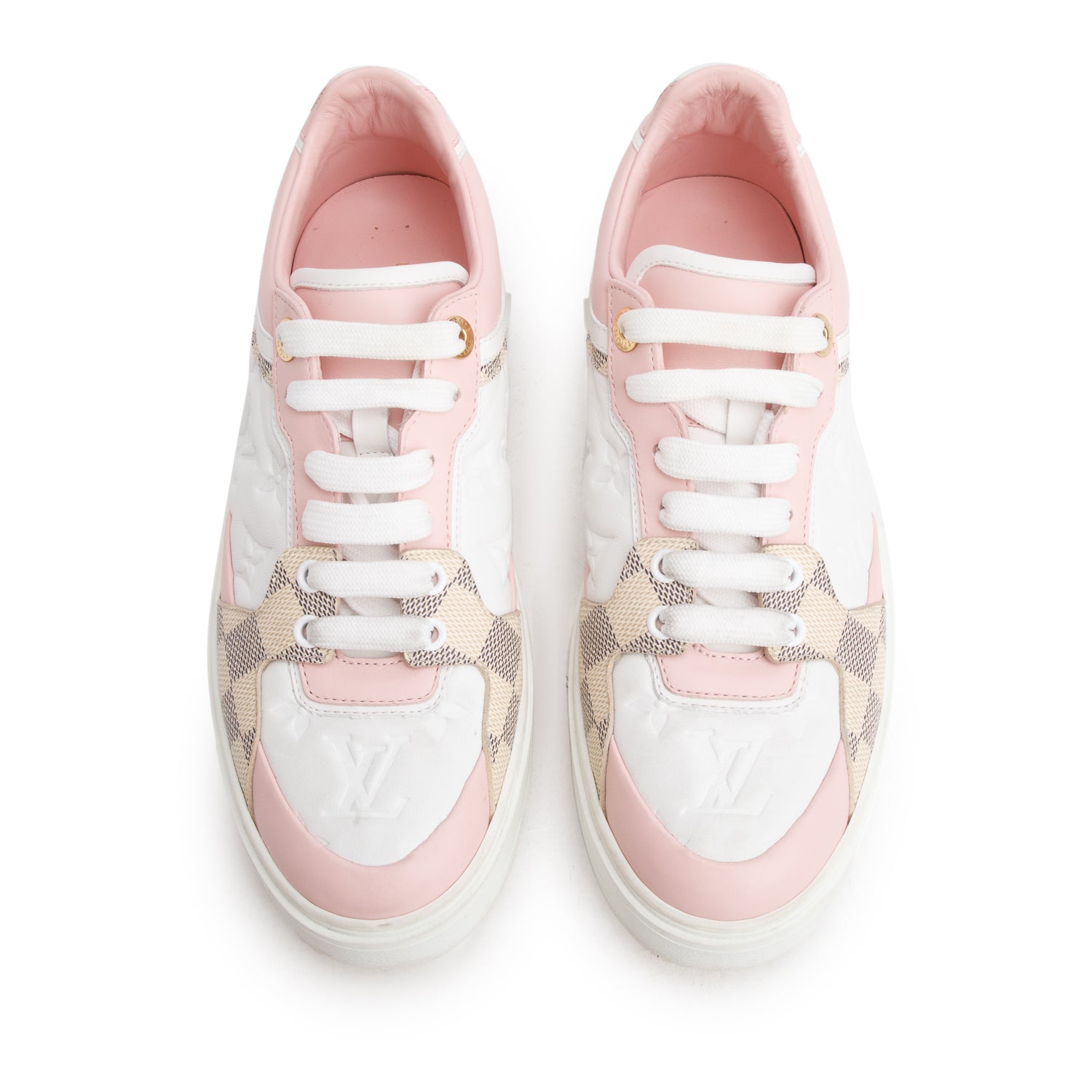 White Monogram Embossed Calfskin Damier Azur Time Out Sneakers, Women's Size 39 w/ Box