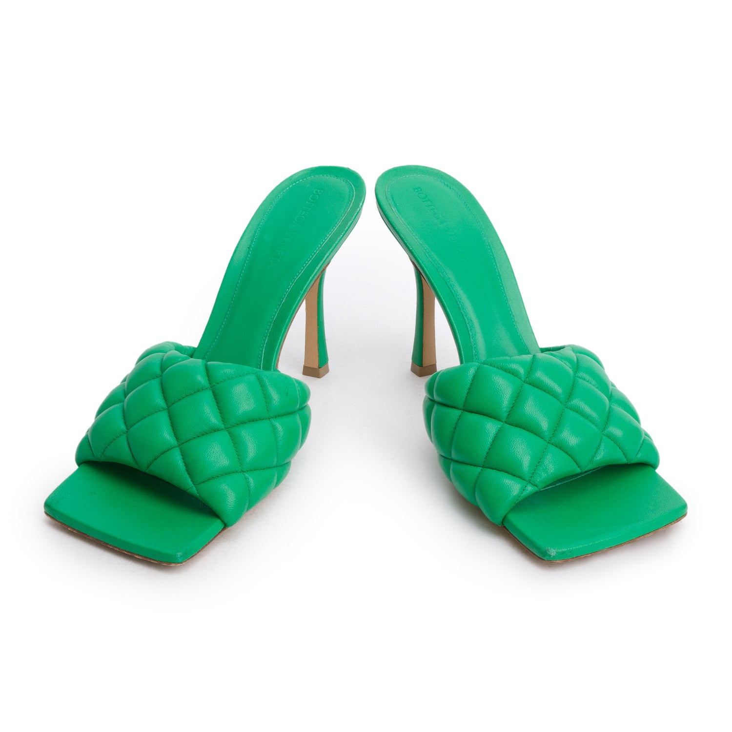 Nappa Matelasse Padded Lido Mule Sandals, Size 41