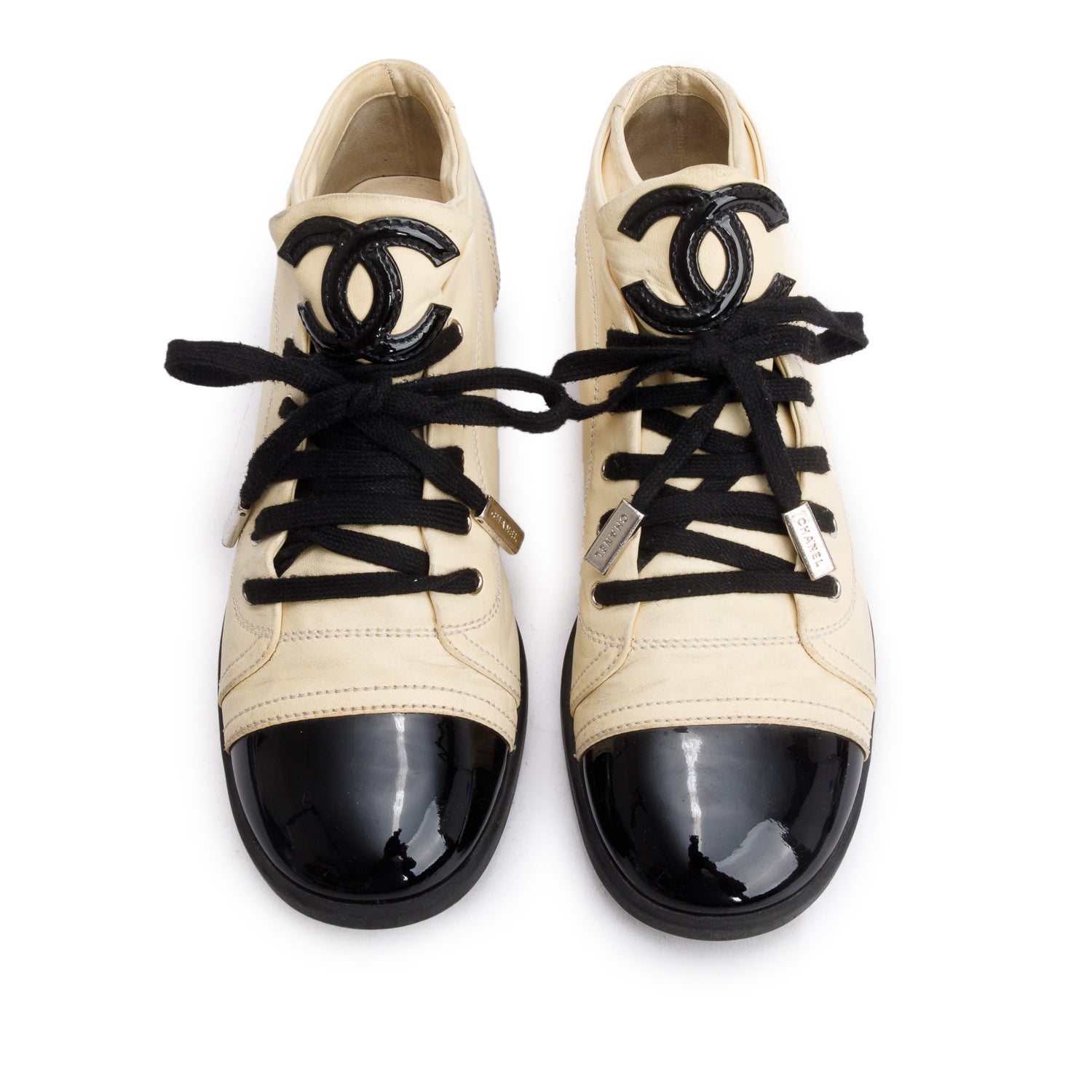 Cream Lambskin Cap Top Interlocking CC Logo Sneakers, Size 39