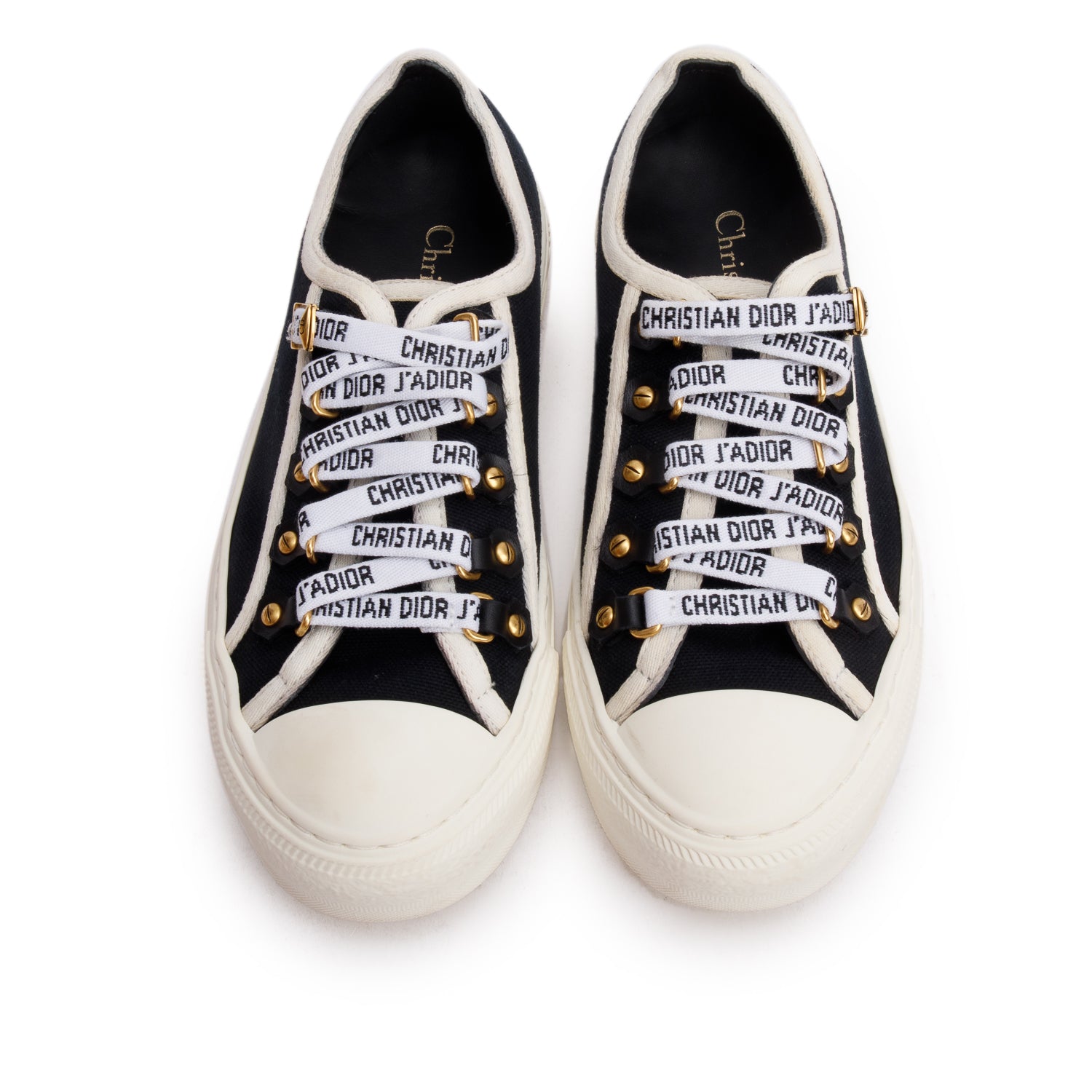 Black Cotton Canvas Walk'N'Dior Sneakers, Size 35.5 w/ Box