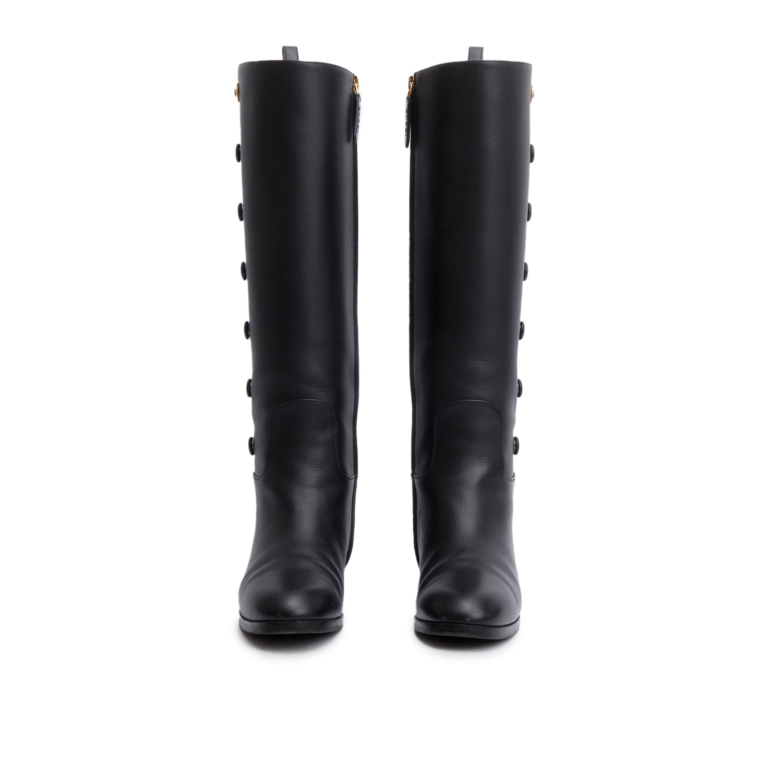 Black Calfskin Buttons Lifford Knee High Boots, Size 36 w/ Box