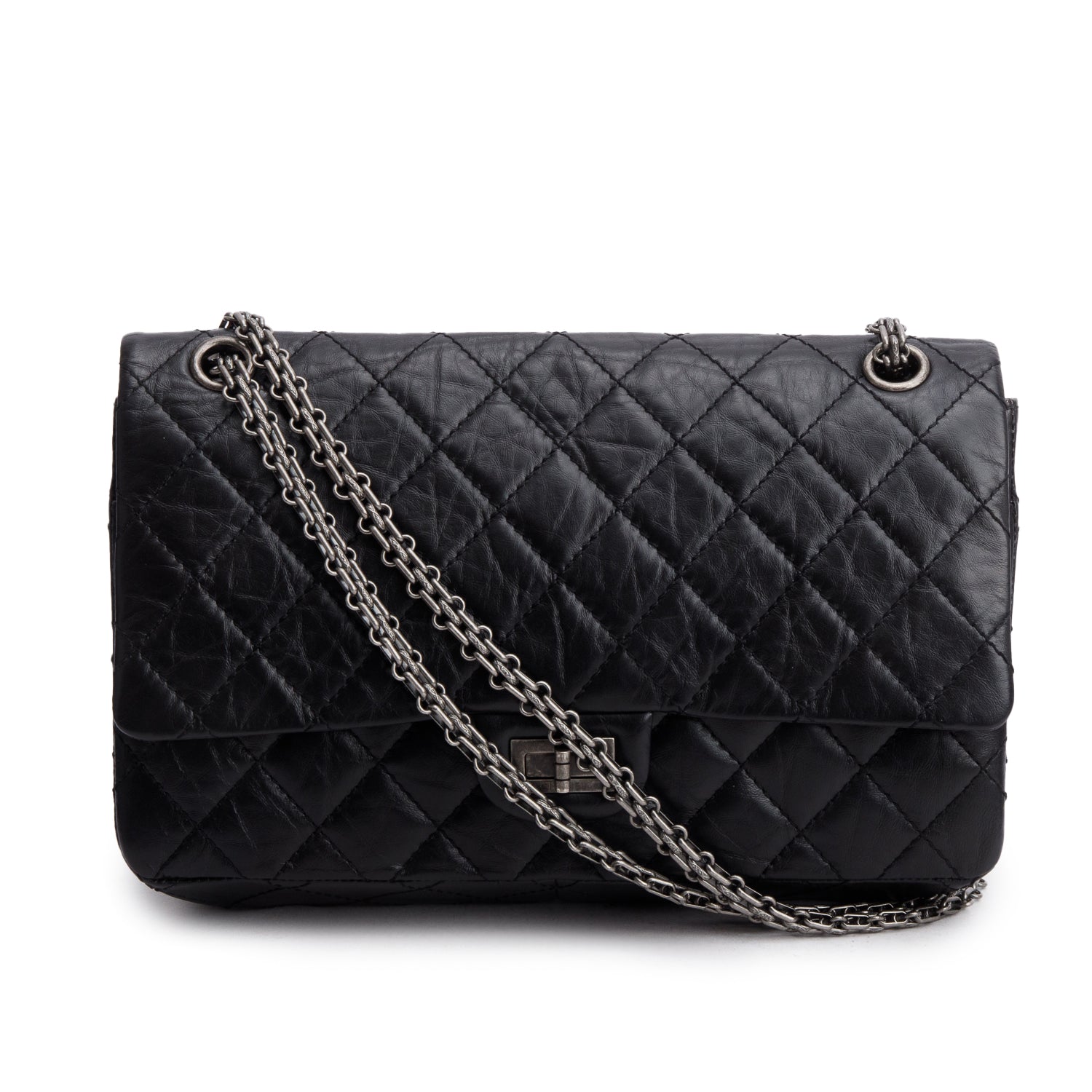 Black Aged Calfskin Leather 2.55 Reissue 226 Double Flap Bag w/ Authenticity Card