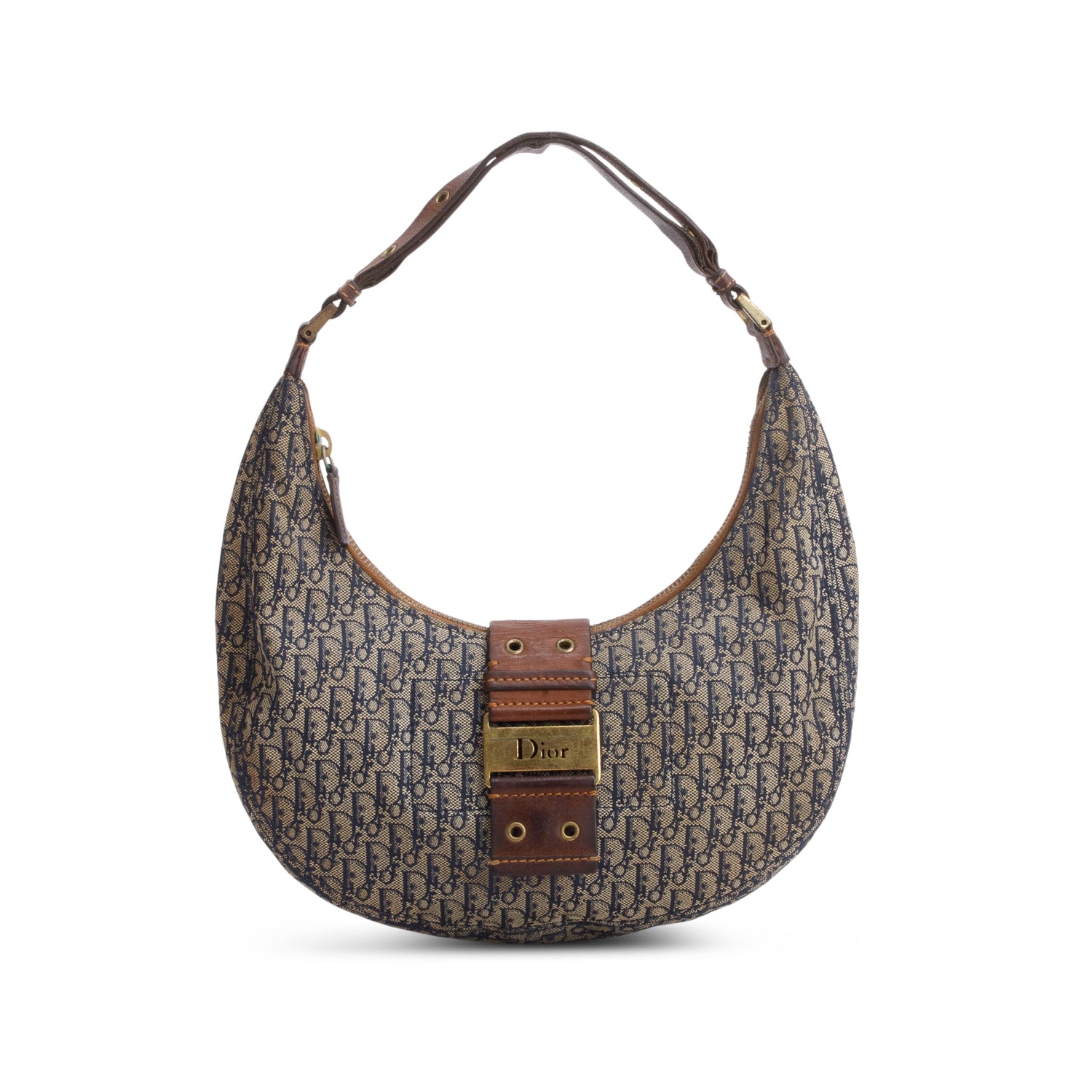 Condition: Good; some scratches and tarnishing at hardware; moderate wear at leather strap and buckle; clean interior.
