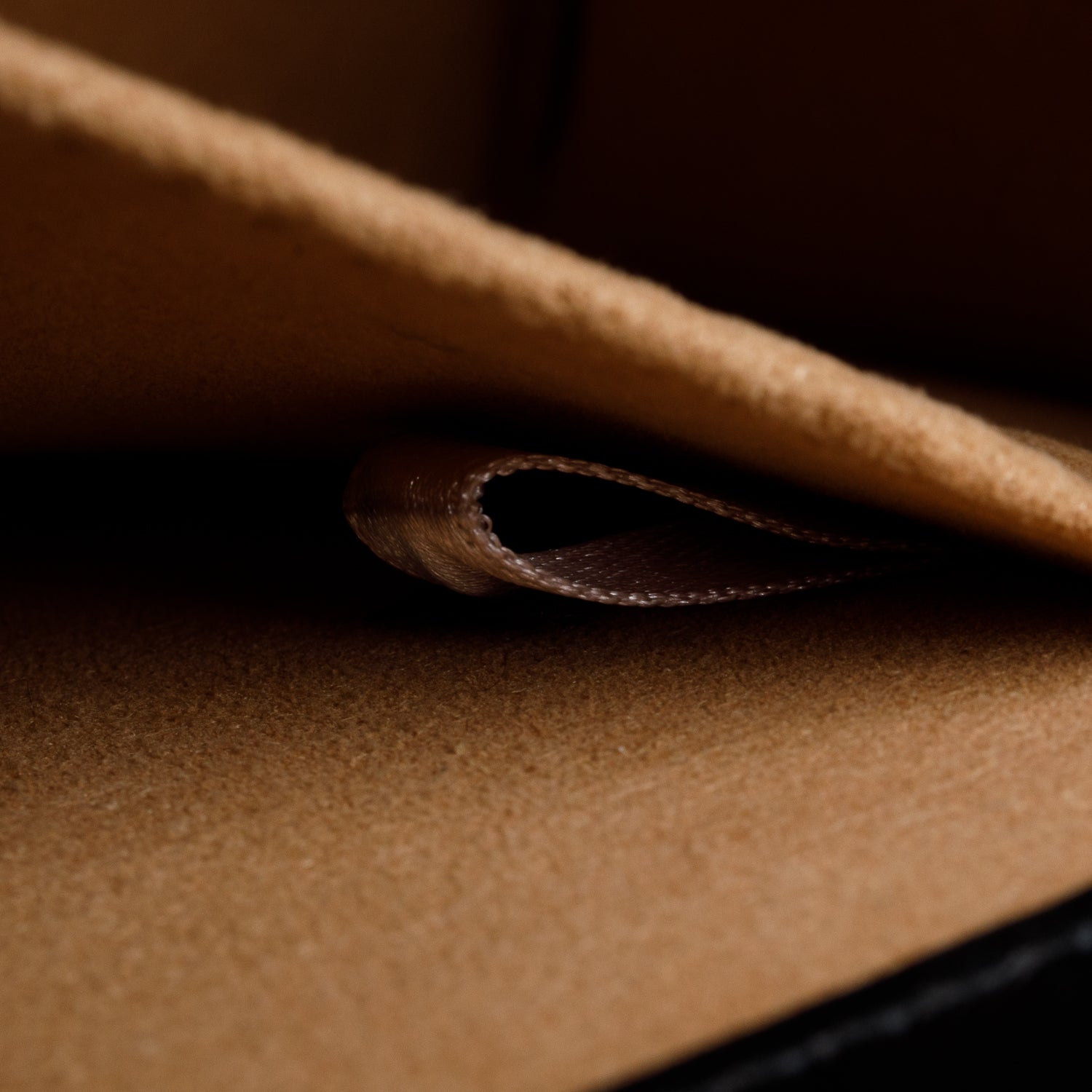Condition: Very Good; minor scuffing at exterior corners; slight scratches and marks at exterior leather; minor scratches at interior flap.