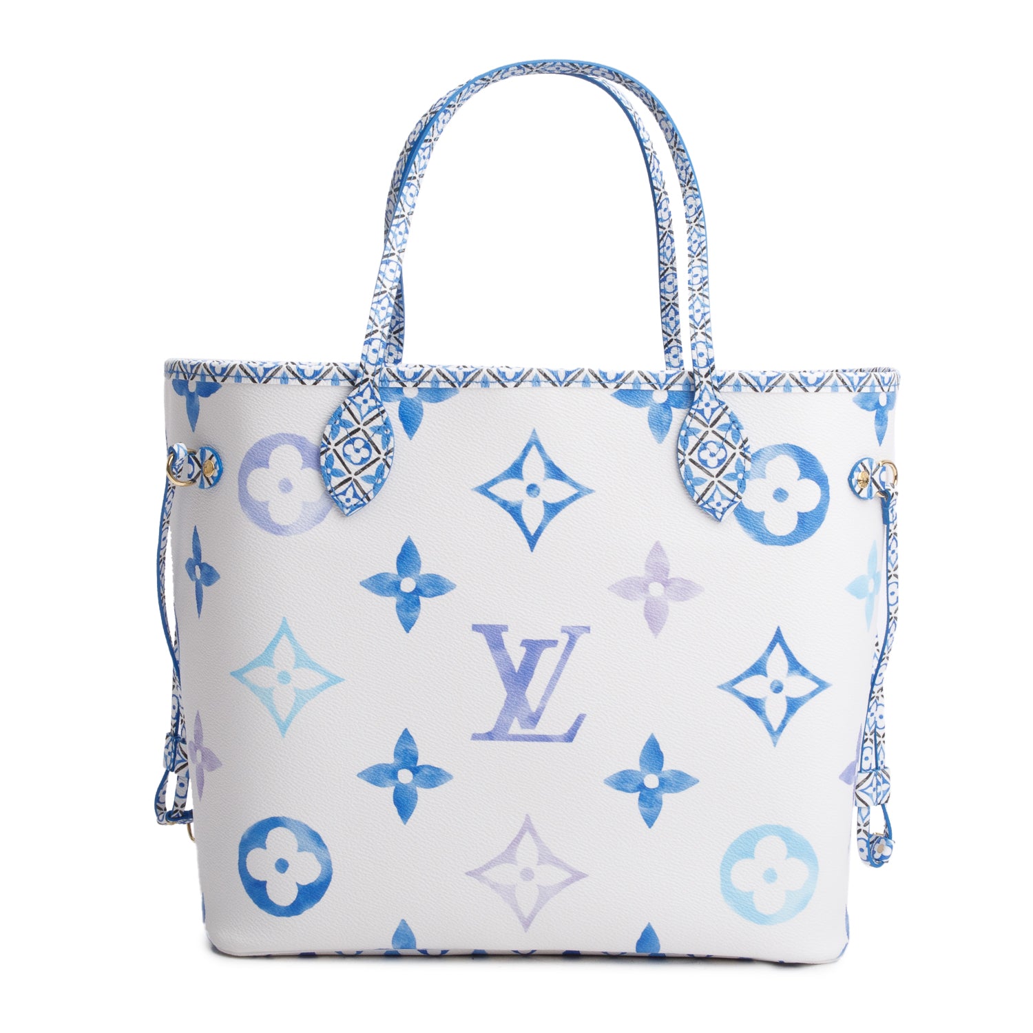 Blue Monogram Giant By The Pool 2.0 Neverfull MM w/ Box & Pouch