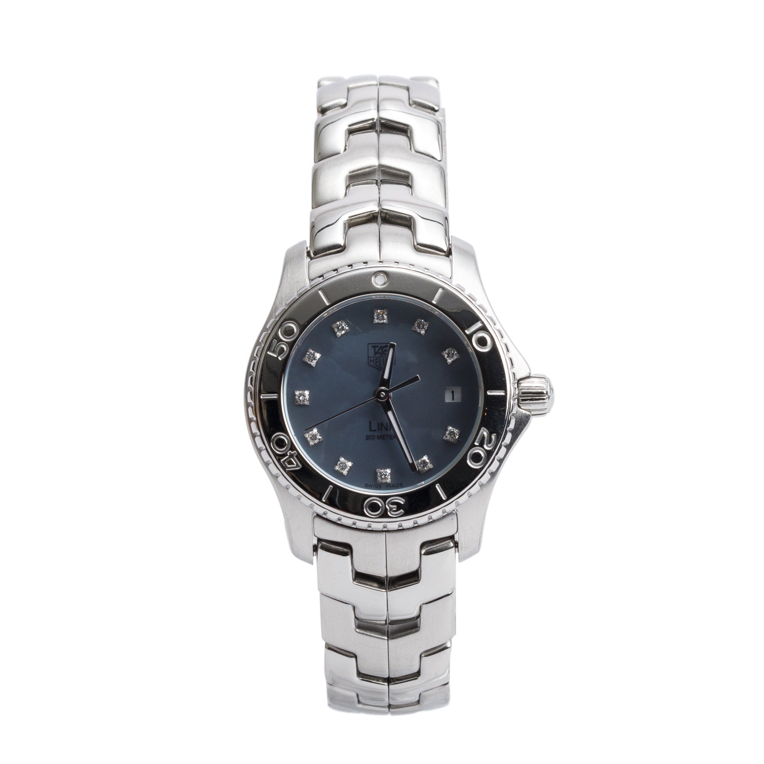 Stainless Steel Link 27 MM Quartz Watch Blue Mother of Pearl Diamond Dial WJ1317-0 w/ Box & Papers