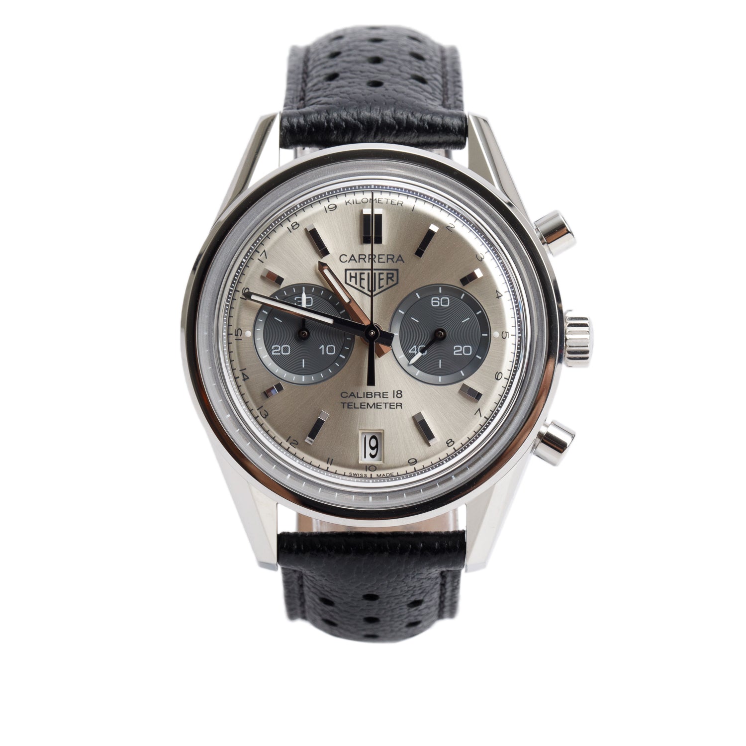 Stainless Steel Carrera Calibre 18 Heritage 39 MM Automatic Chronograph Watch Silver Dial CAR221A w/ Box & Papers