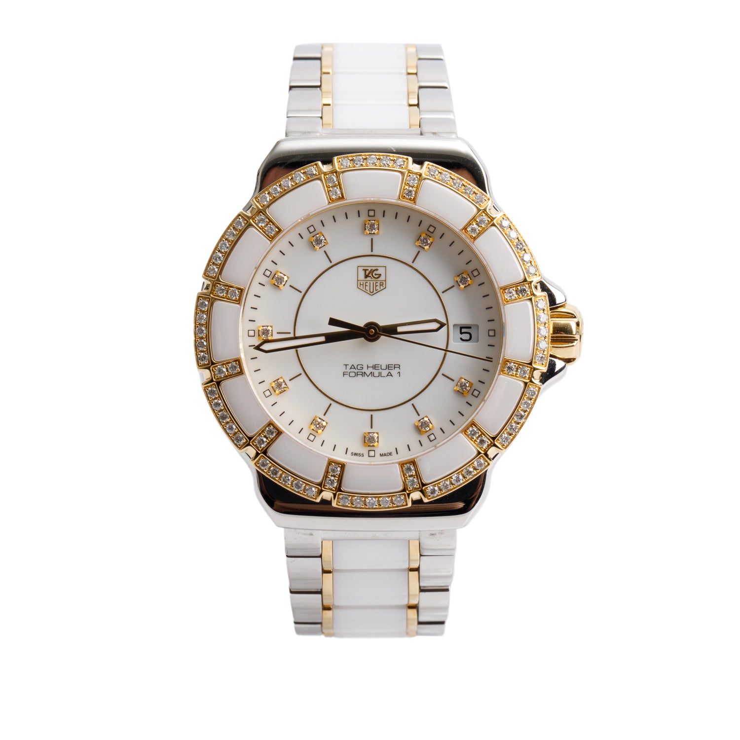 Stainless Steel & White Ceramic Diamond Bezel Formula 1 37 MM Quartz Watch Diamond White Dial WAH1221