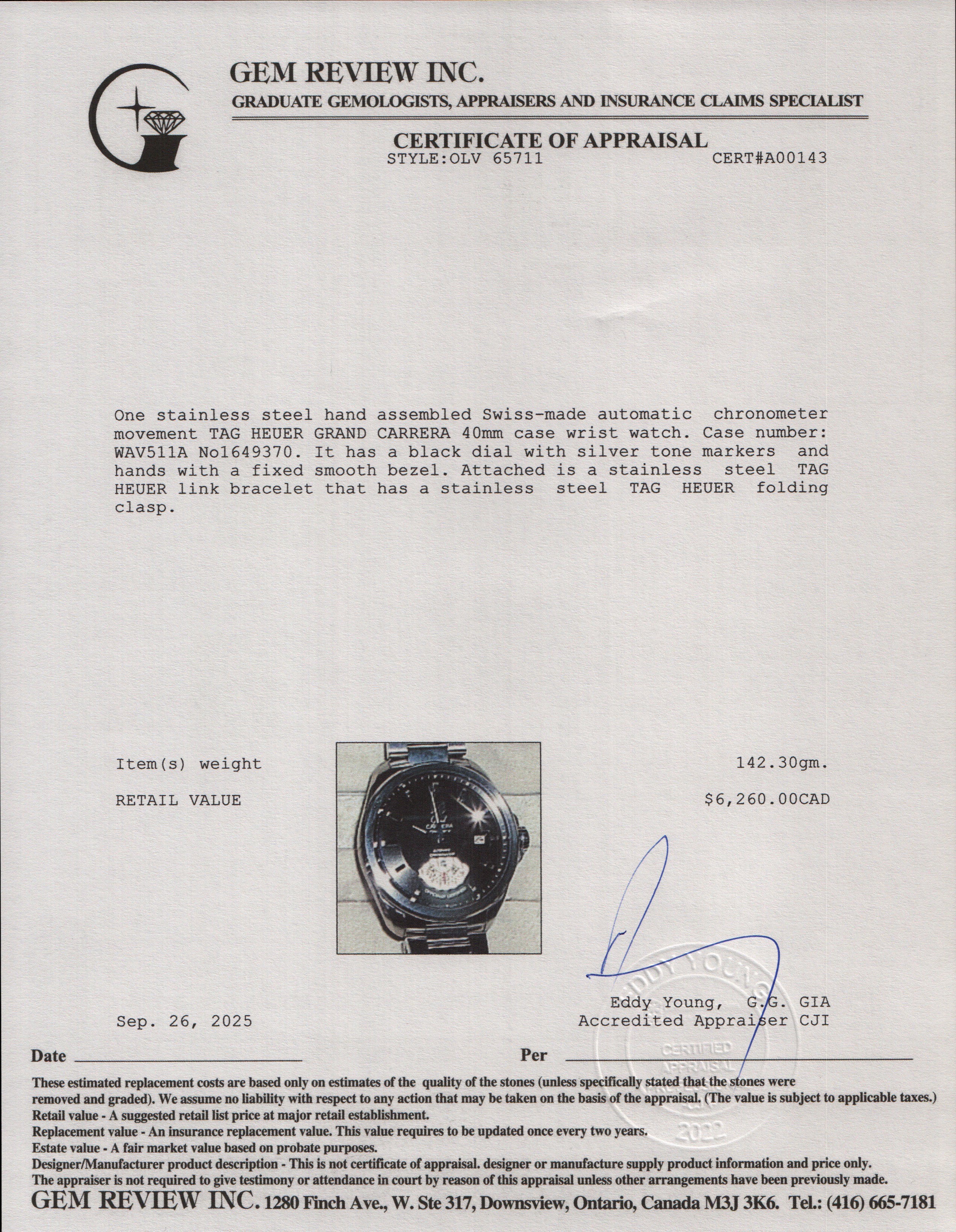 Stainless Steel Grand Carrera 40 MM Automatic Watch Black Dial WAV511A
