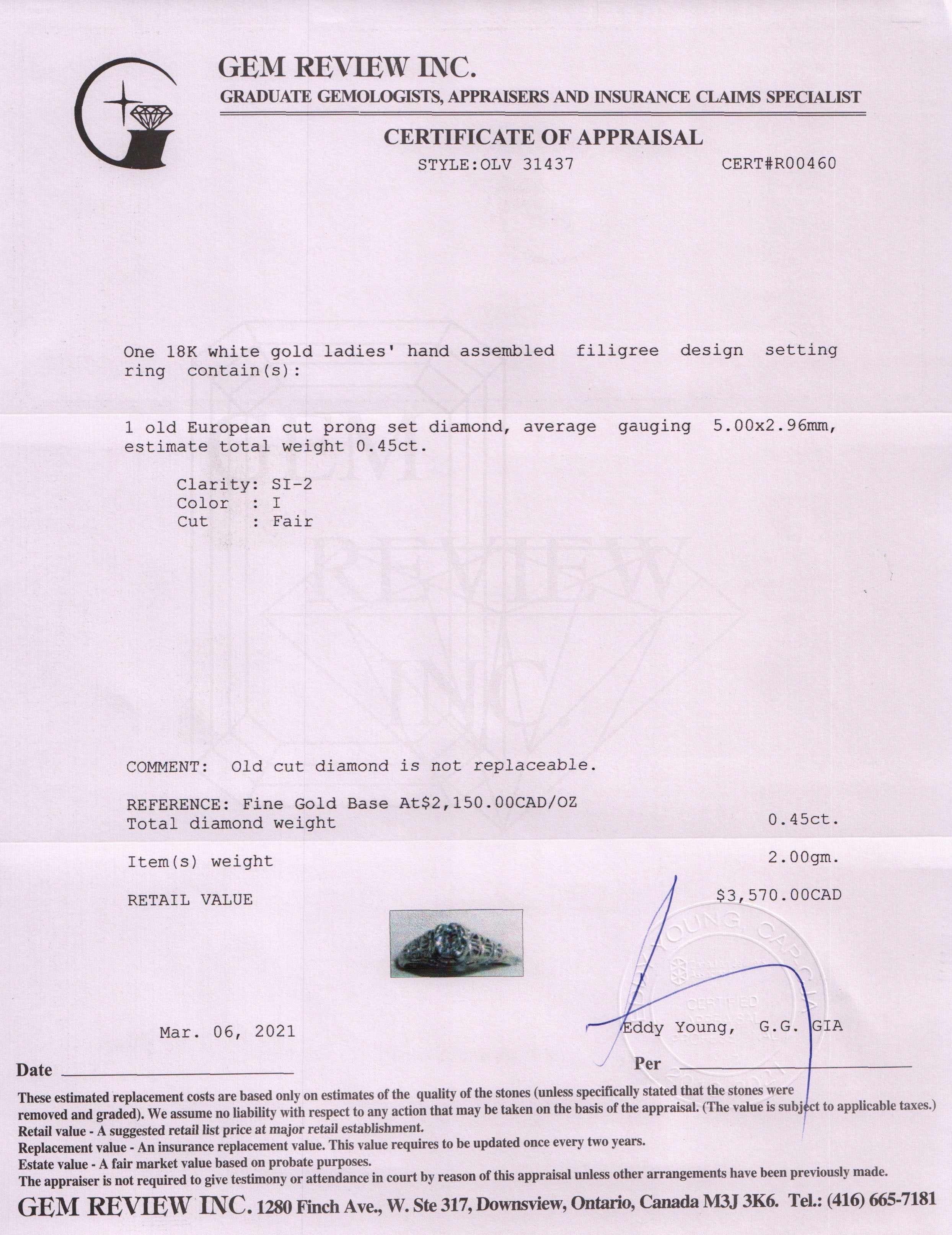 Antique 18k White Gold Filigree Solitaire Diamond Ring