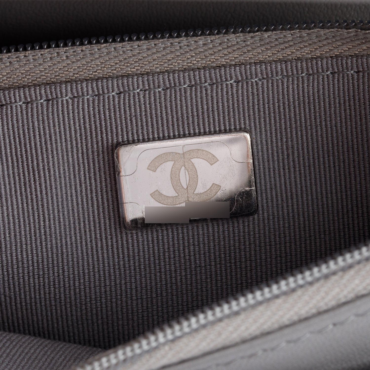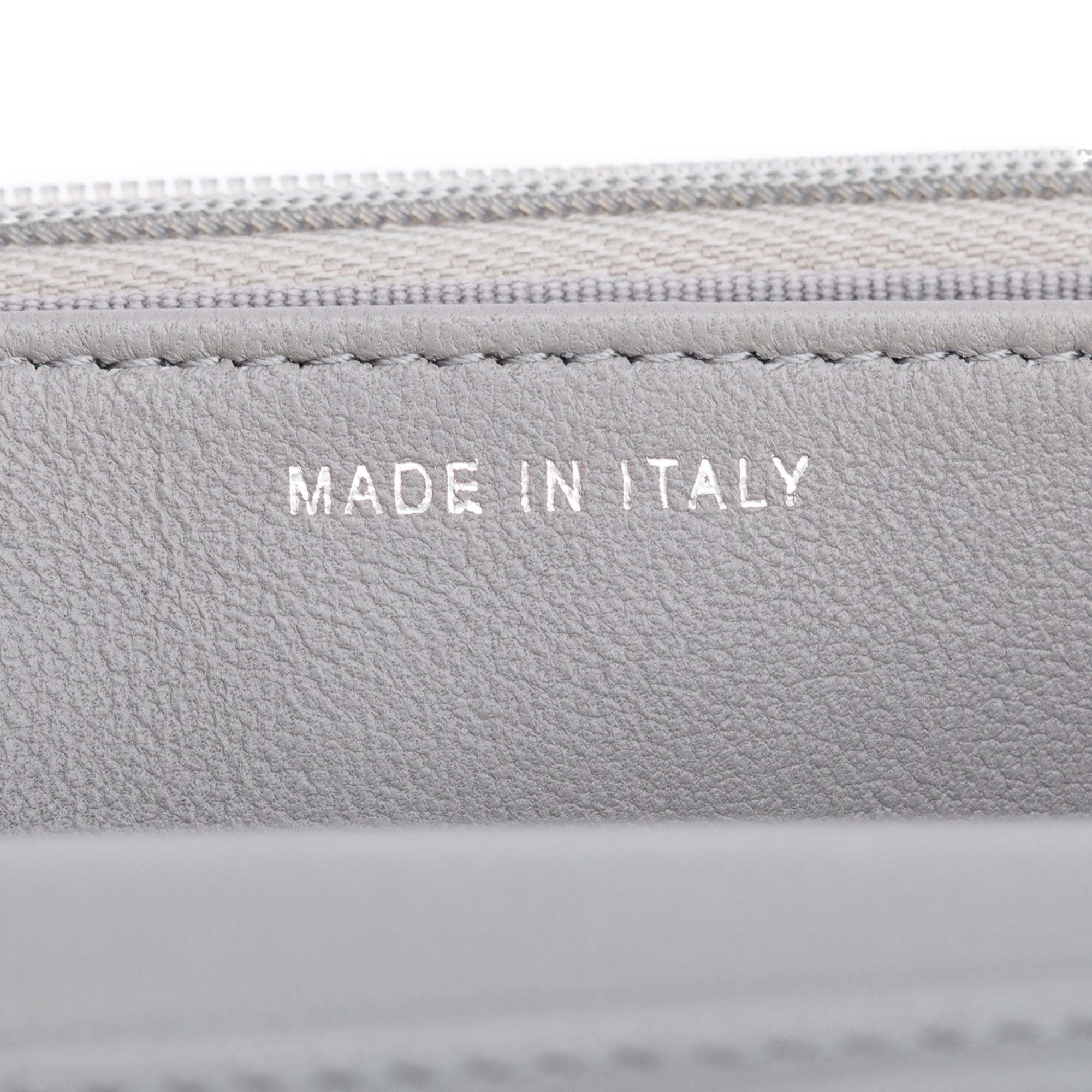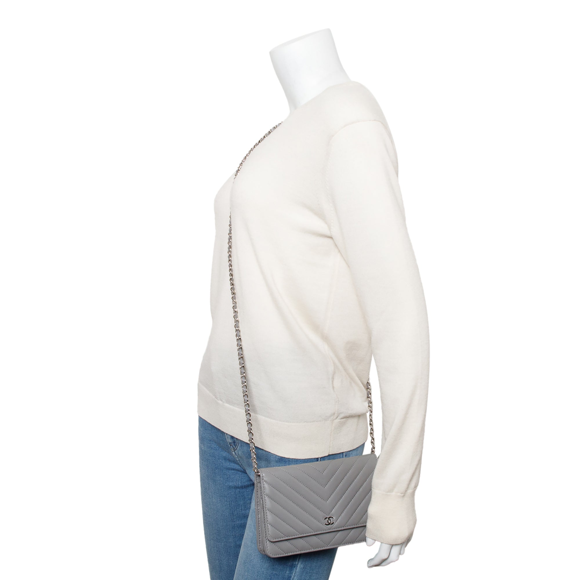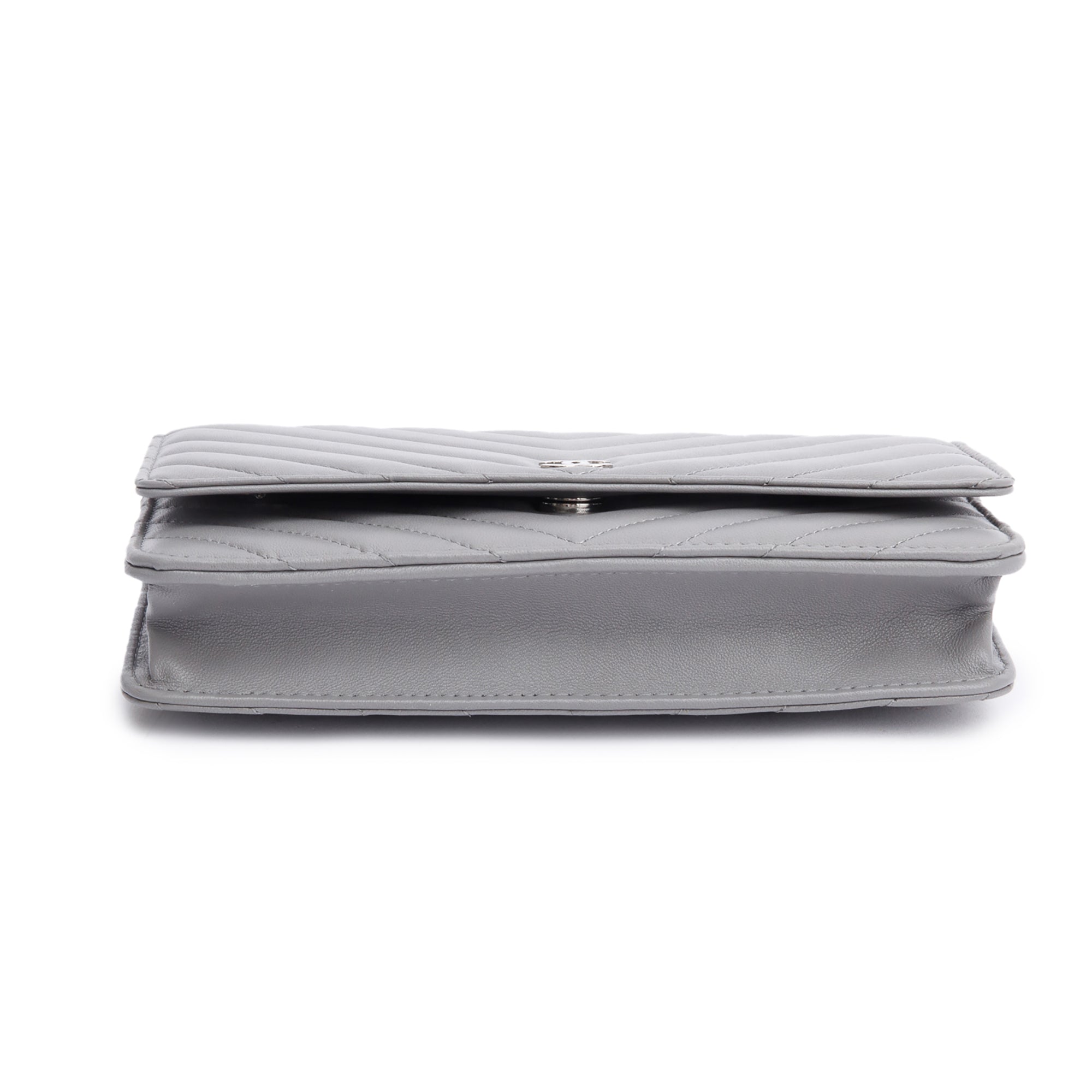 Grey Chevron Lambskin Leather Classic Wallet on Chain w/ Box