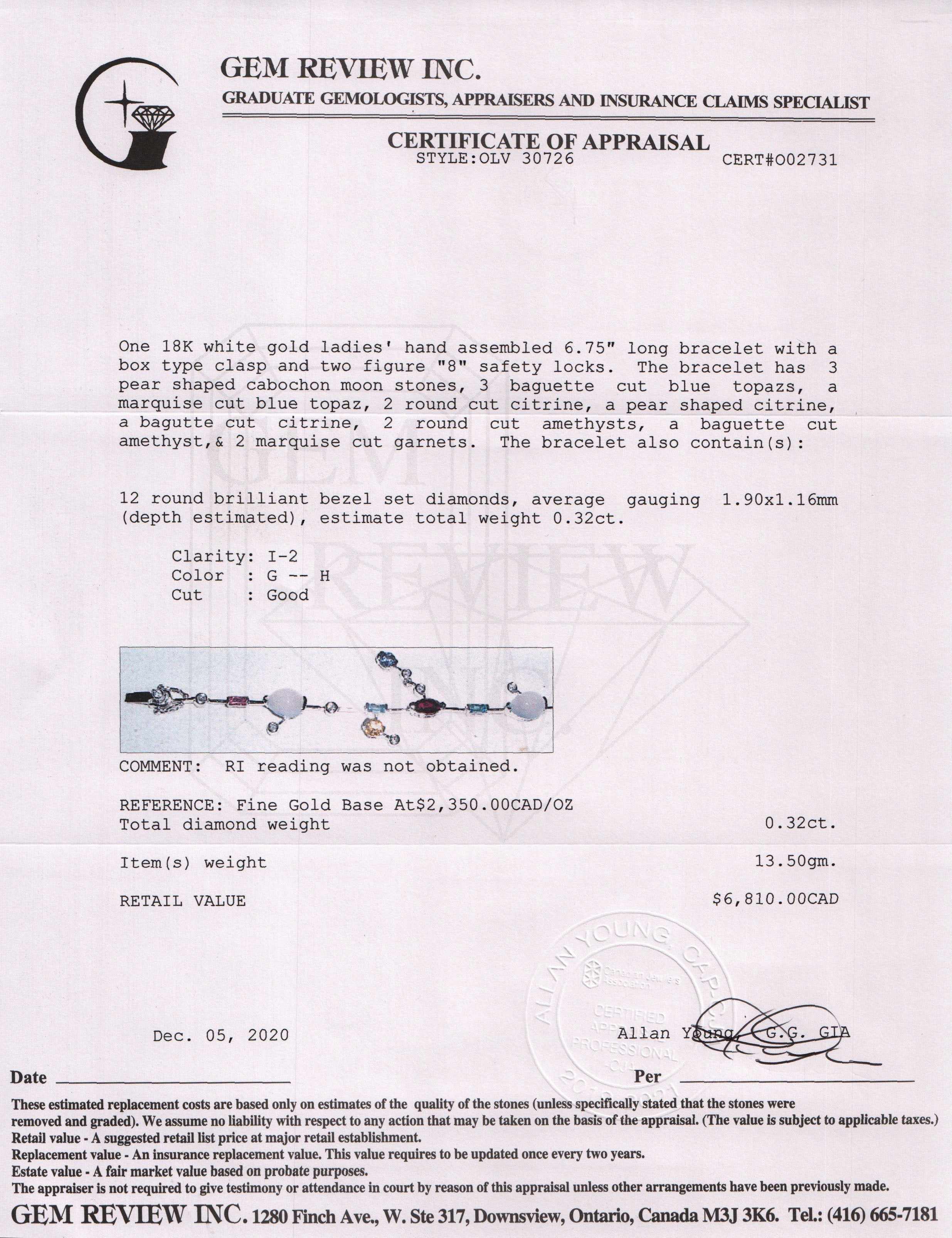 • 12 Coloured Stones Including Moonstones, Blue Topaz, Citrine, Amethyst and Garnet
