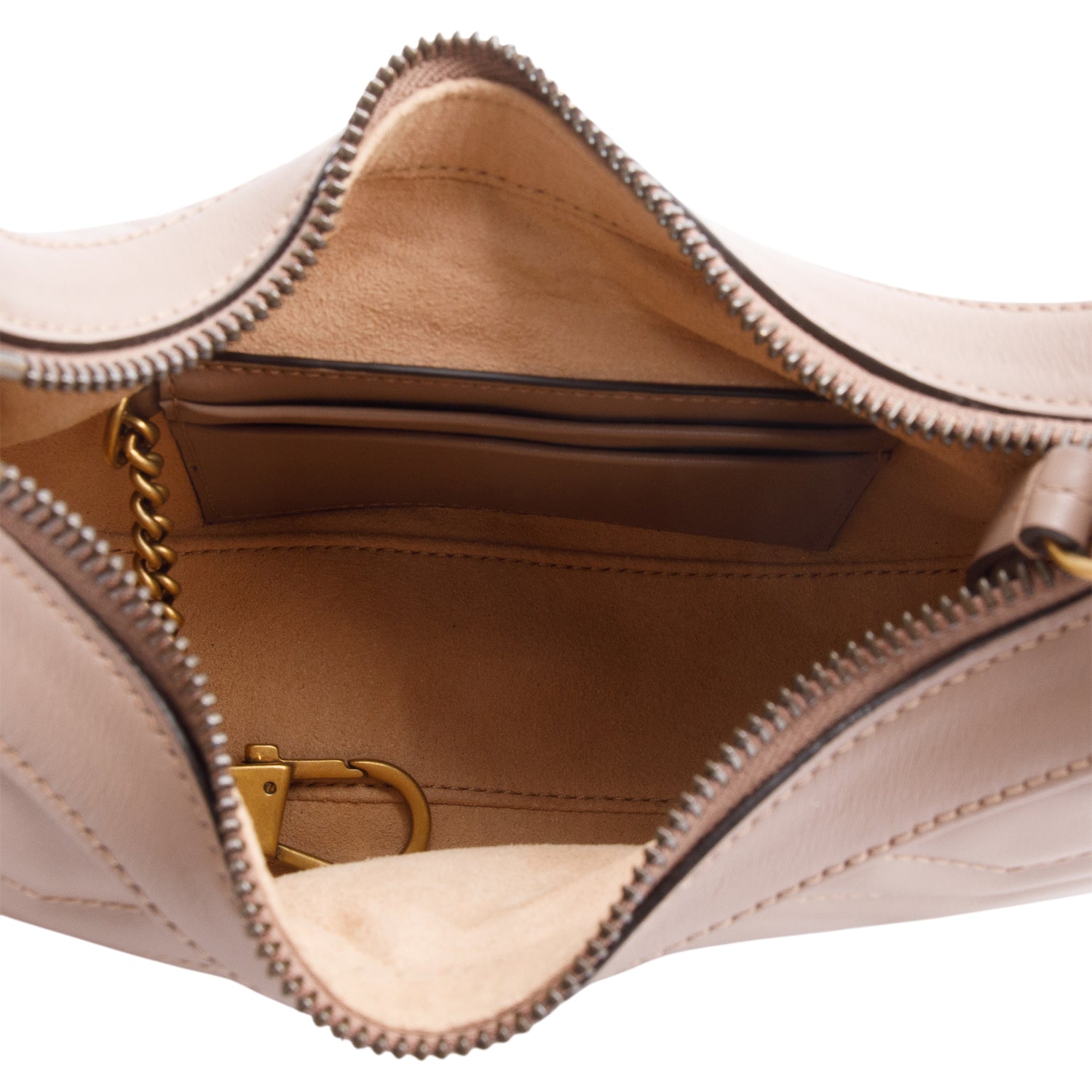Beige GG Marmont Half-Moon Shaped Mini Bag w/ Strap & Box