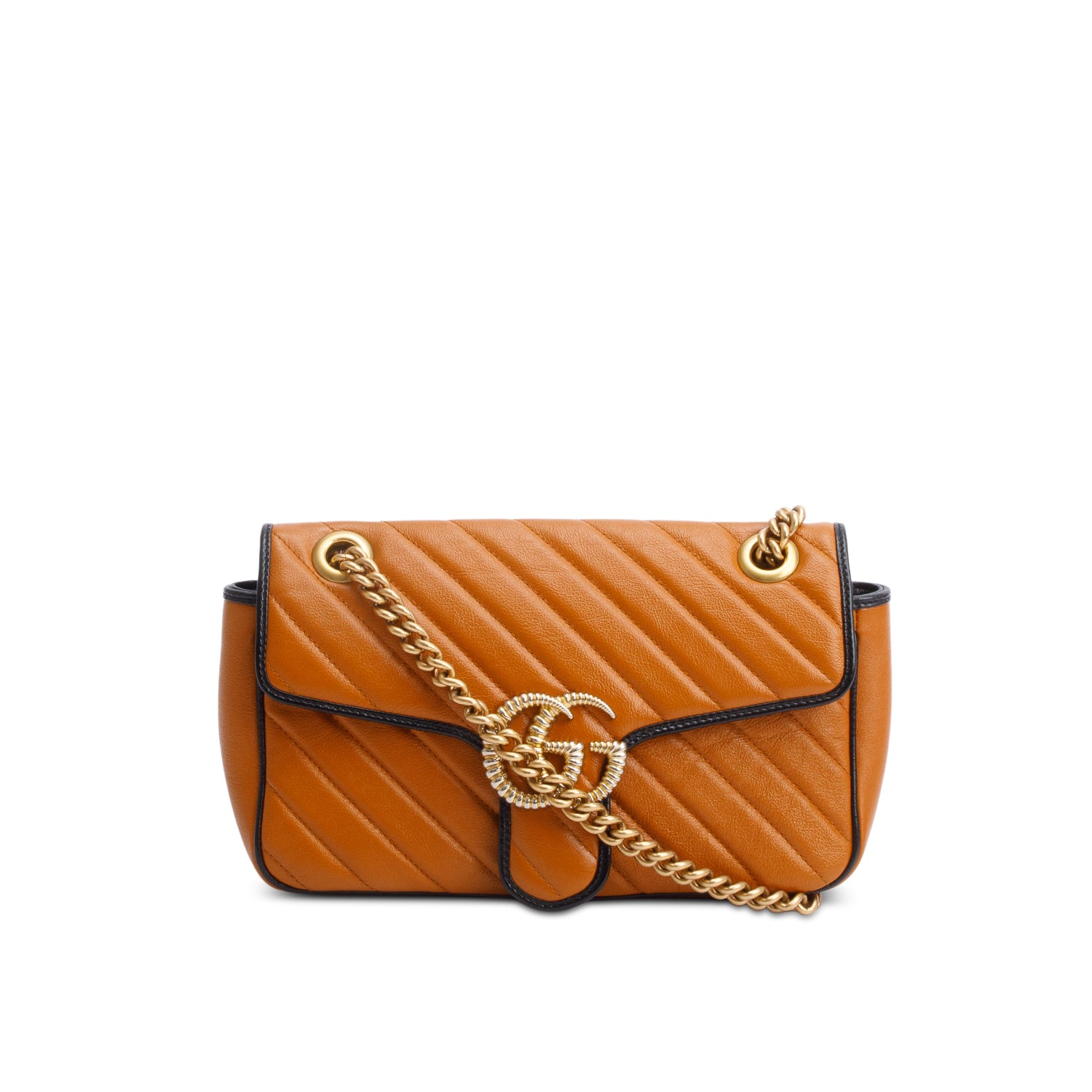 Brown/Black Trim GG Marmont Matelasse Leather Torchon Small Shoulder Bag
