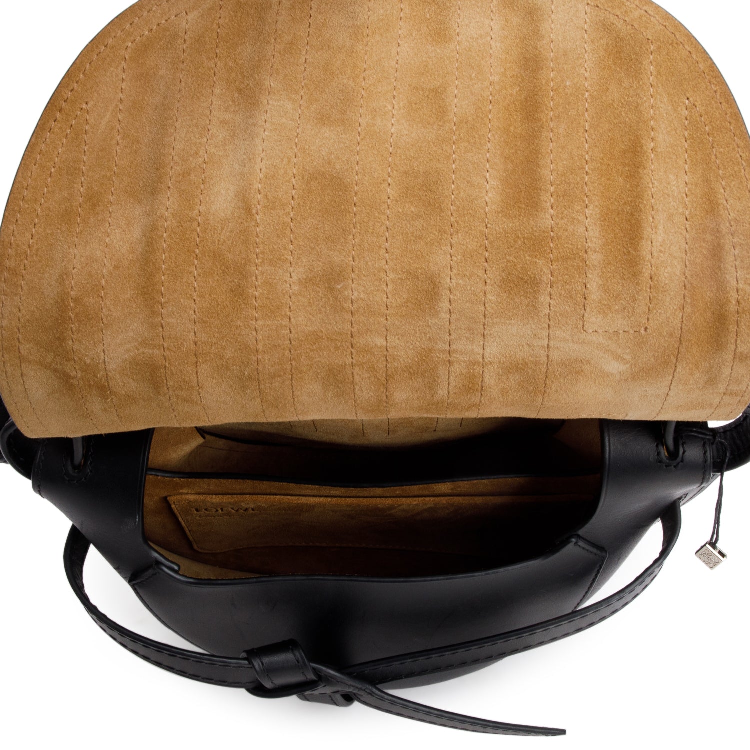 Condition: Very Good; some scratches at exterior leather and creasing at strap; minor marks at interior suede.