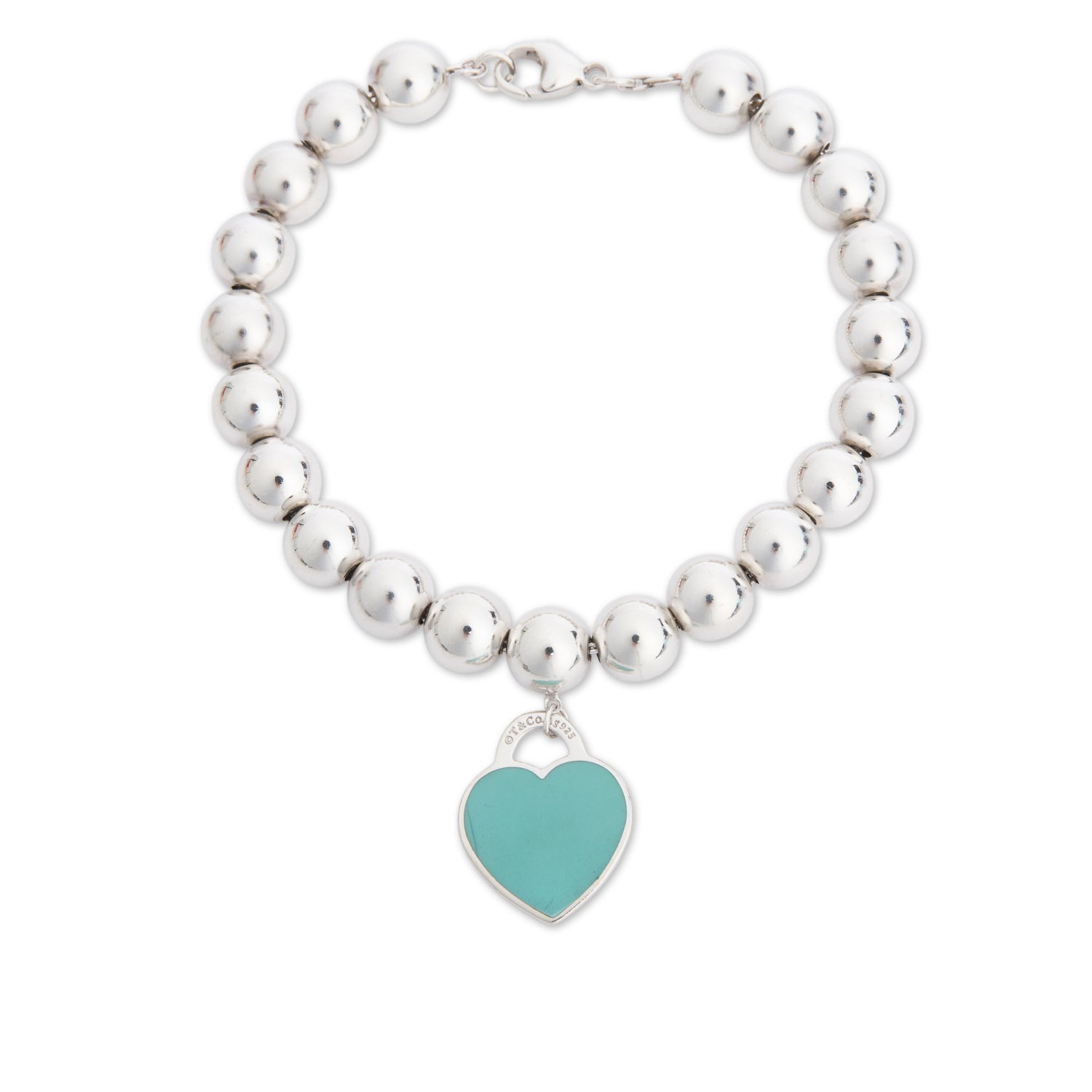 Sterling Silver Return to Tiffany Small Heart Tag 8 MM Bead Bracelet with Blue Enamel