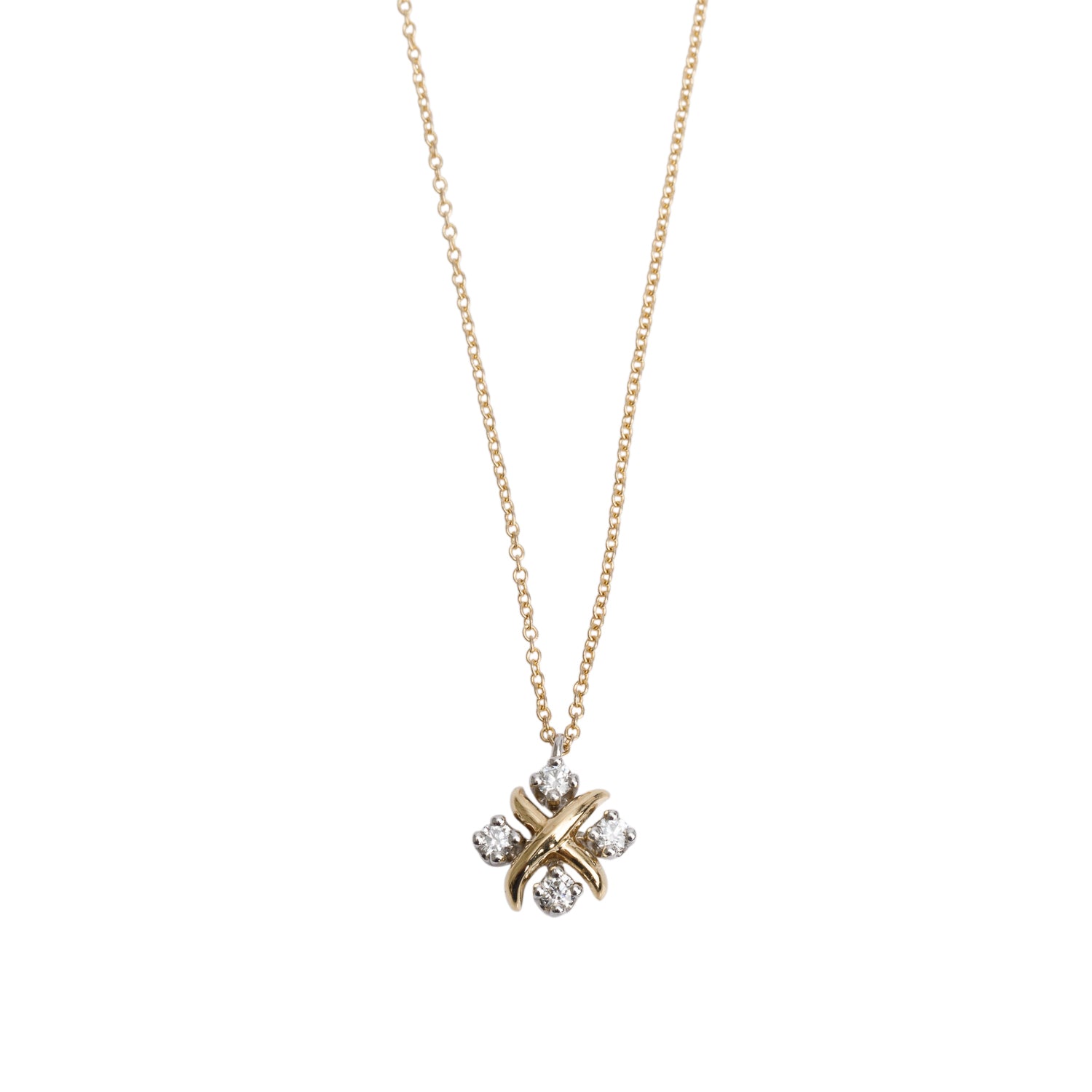 18k Yellow Gold & Platinum Diamond Sixteen Stone Pendant Necklace w/ Box