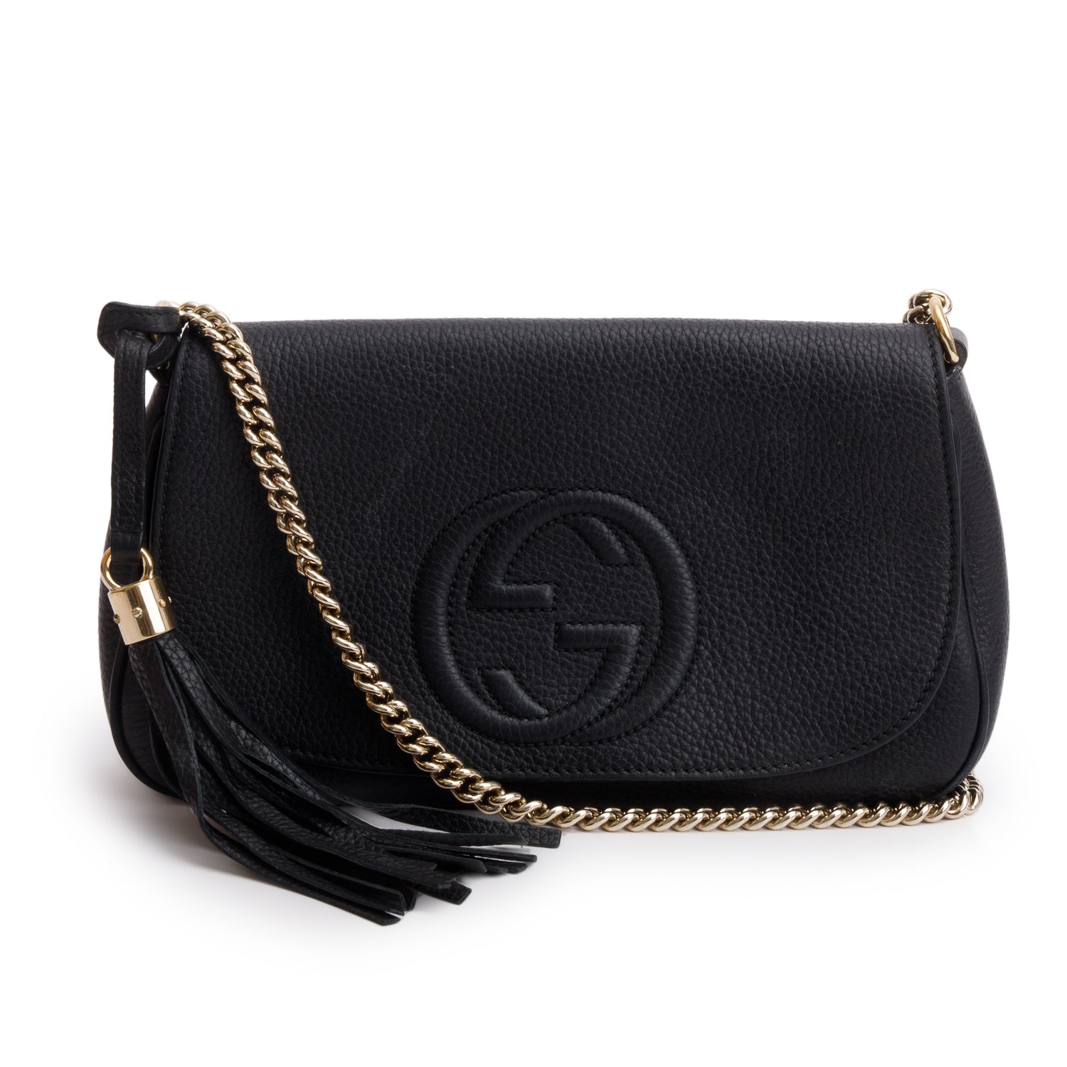 Black Pebbled Calfskin Medium Soho Chain Crossbody Bag w/ Box