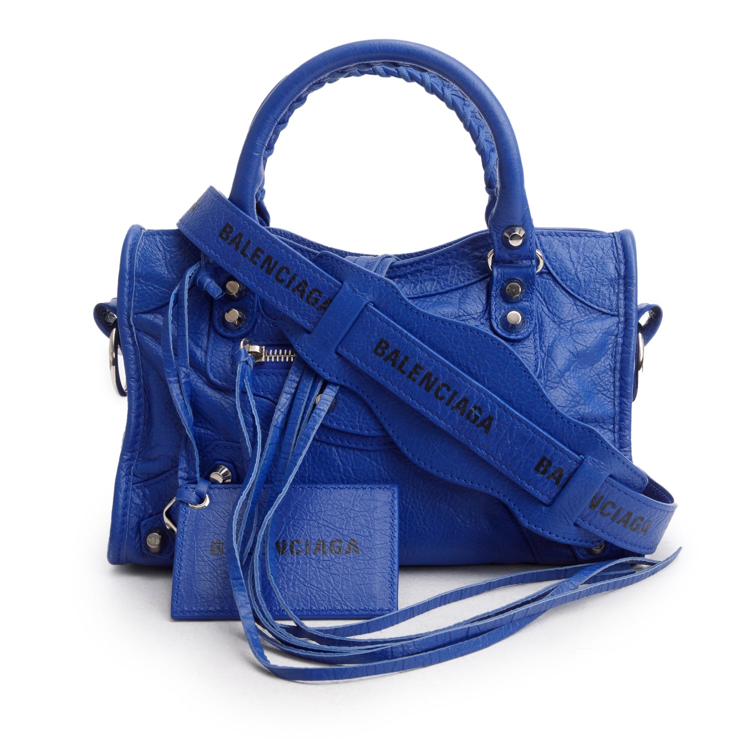 Blue Agneau Leather Classic Mini City Bag w/ Logo Strap