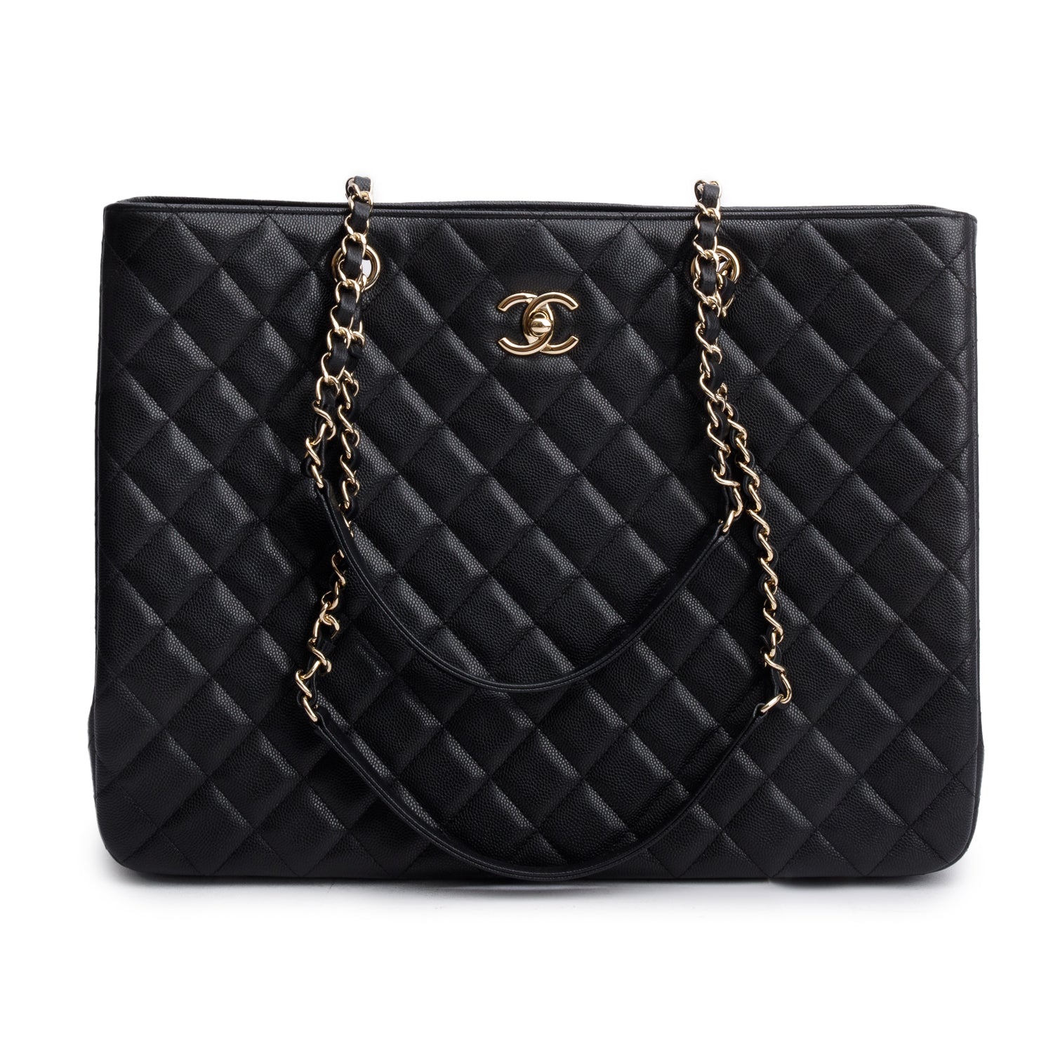 2021 Black Caviar Quilted Classic Large Shopping Tote w/ Box & Receipt