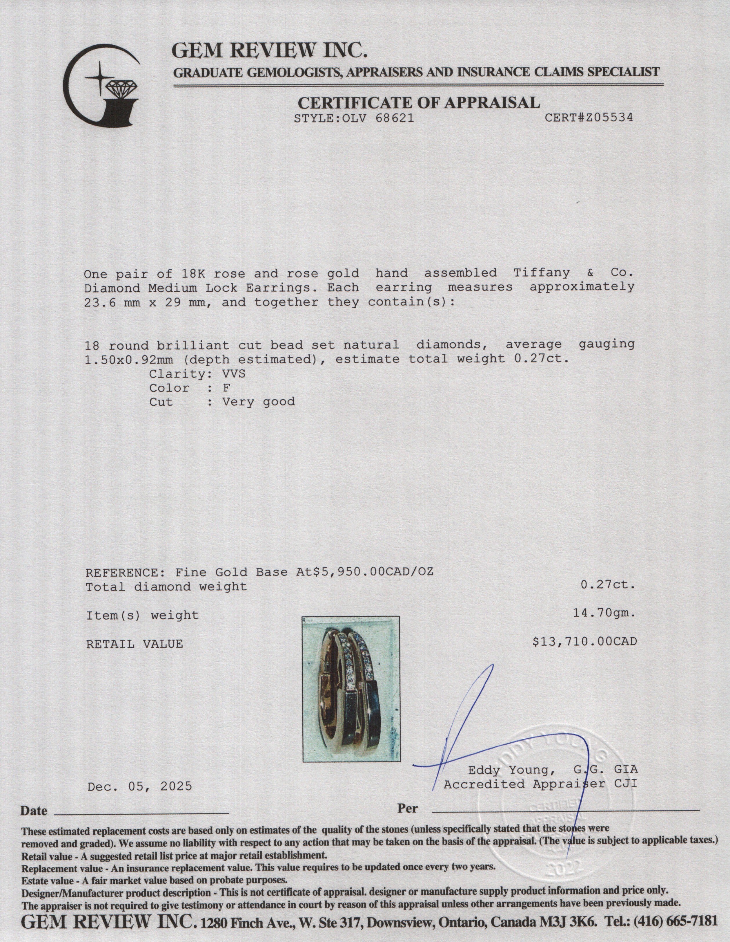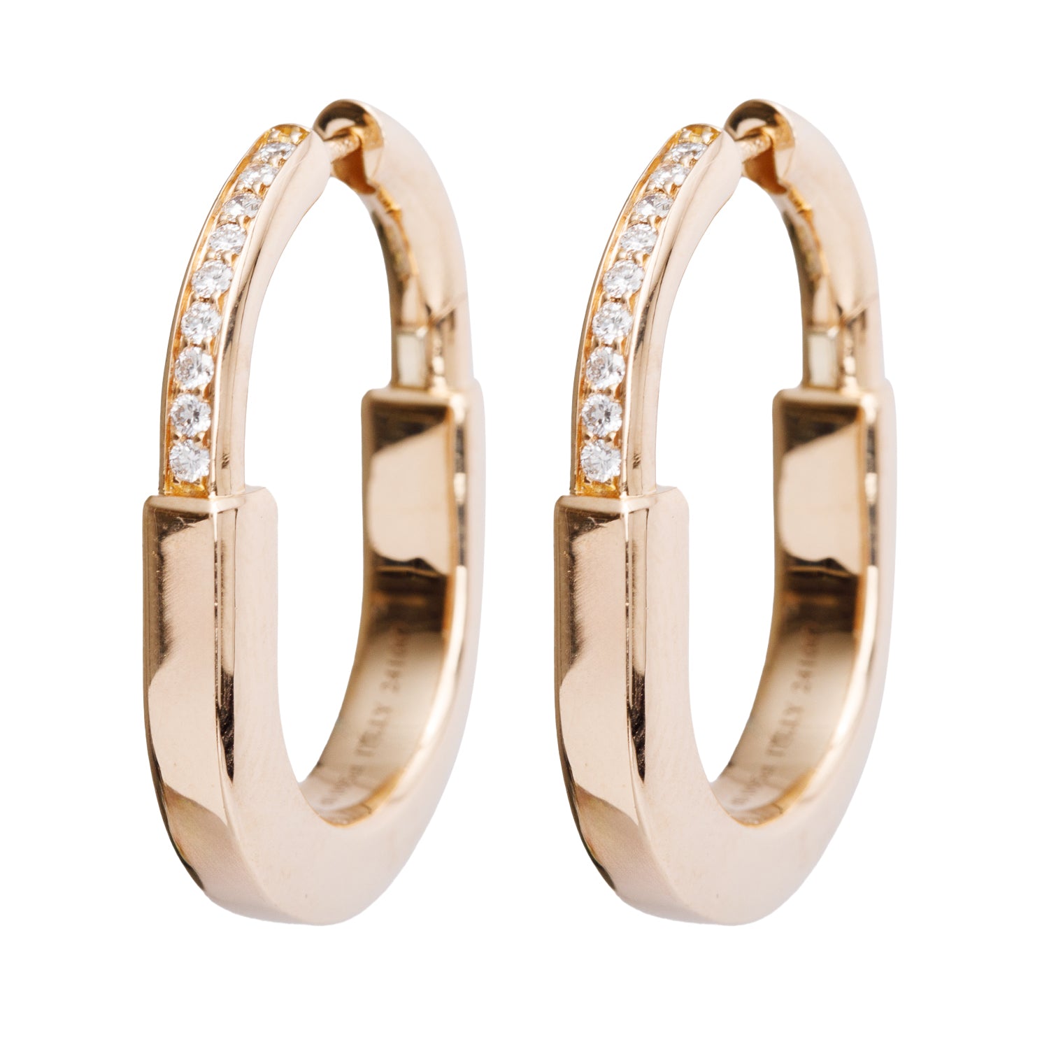 18k Rose Gold Diamond Medium Lock Earrings w/ Box