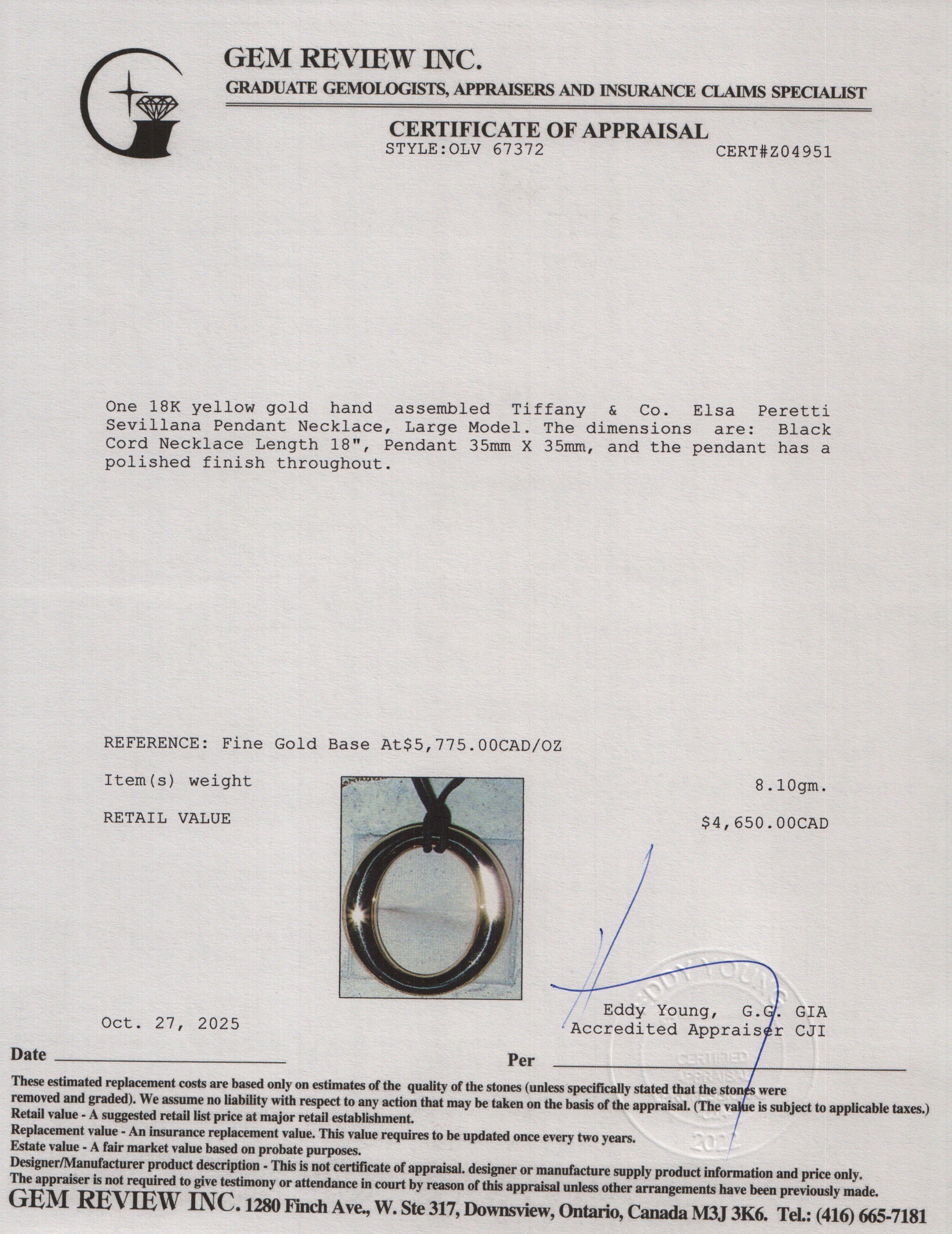 Elsa Peretti 18k Yellow Gold Sevillana Pendant Necklace, Large Model w/ Box