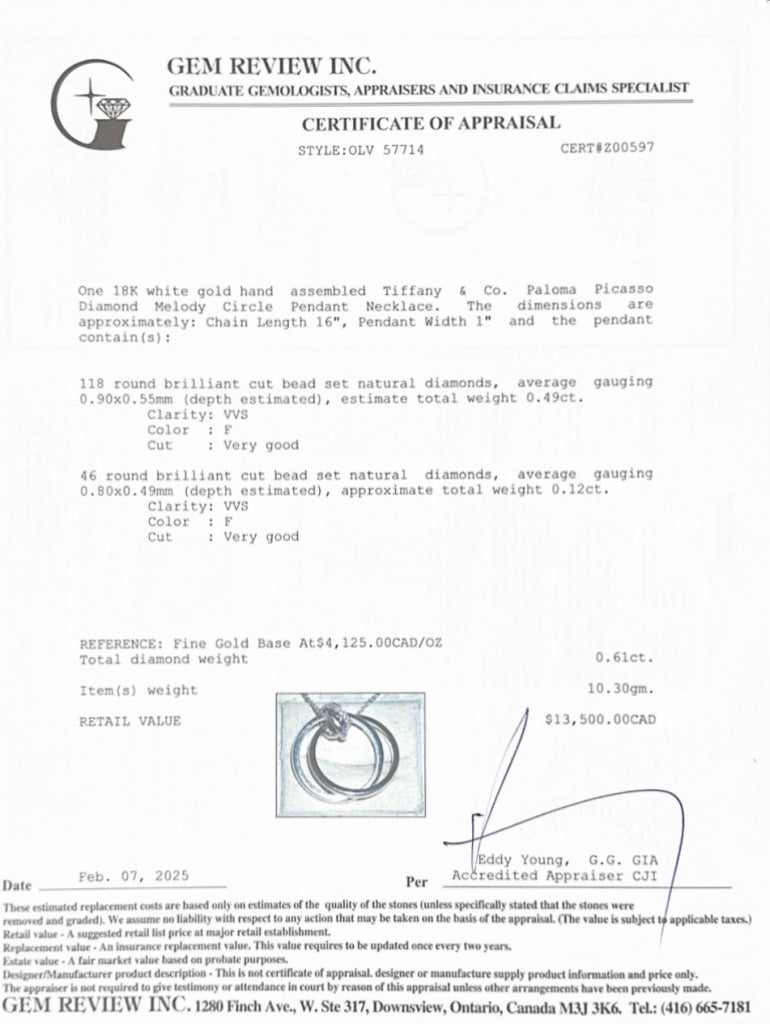 Paloma Picasso 18k White Gold Diamond Melody Circle Pendant Necklace w/ Box