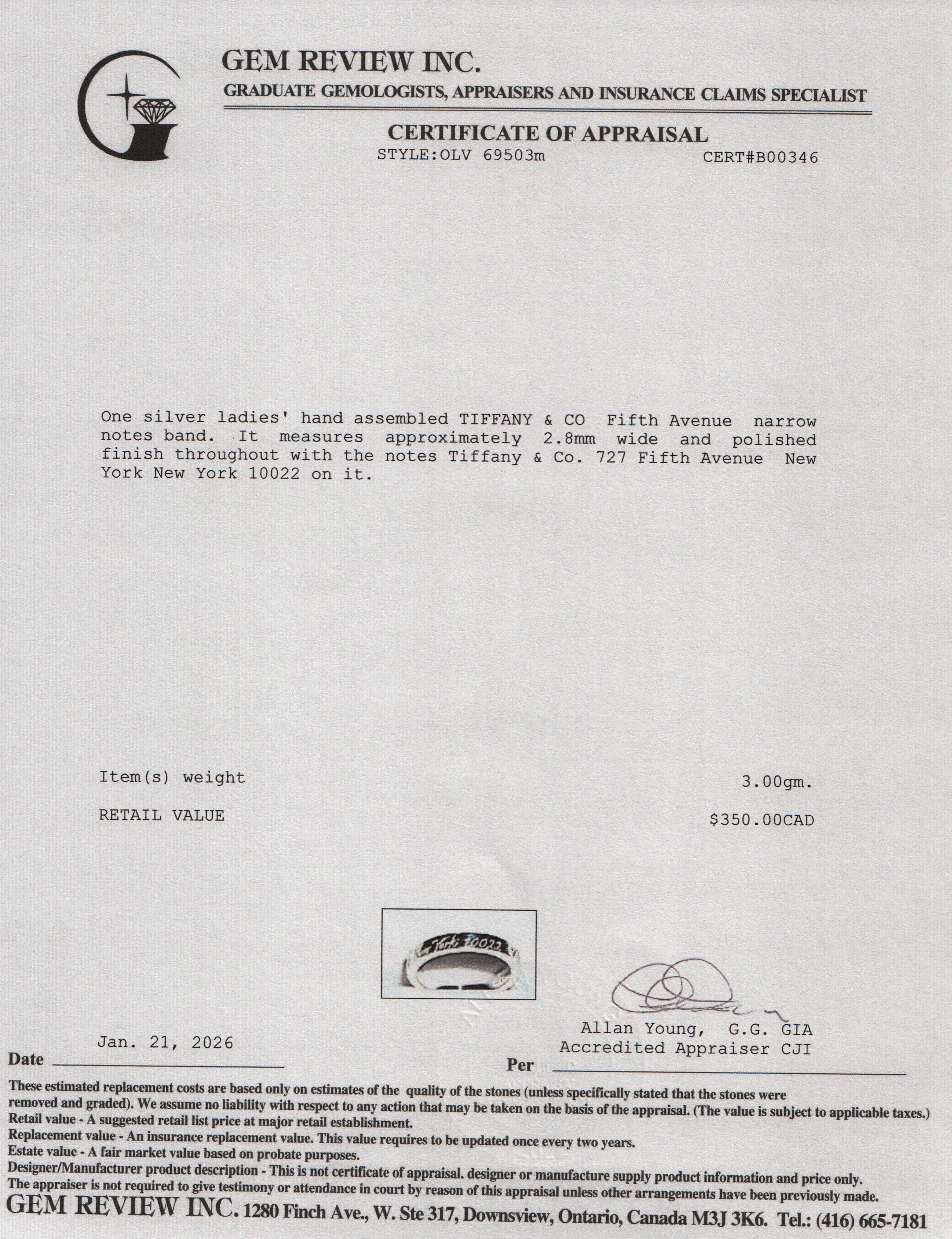 Sterling Silver Fifth Ave Narrow Notes Band Ring, Size 4.75
