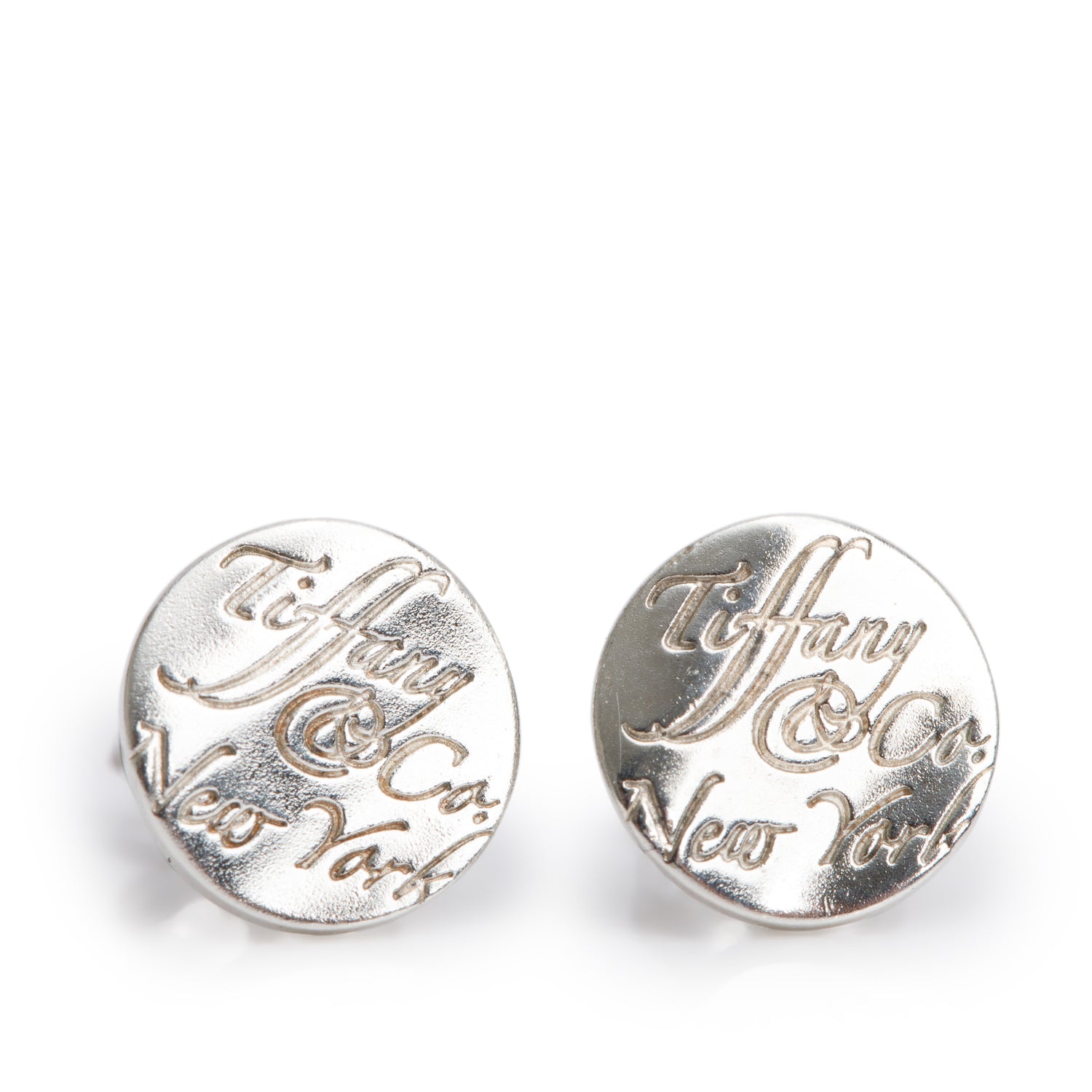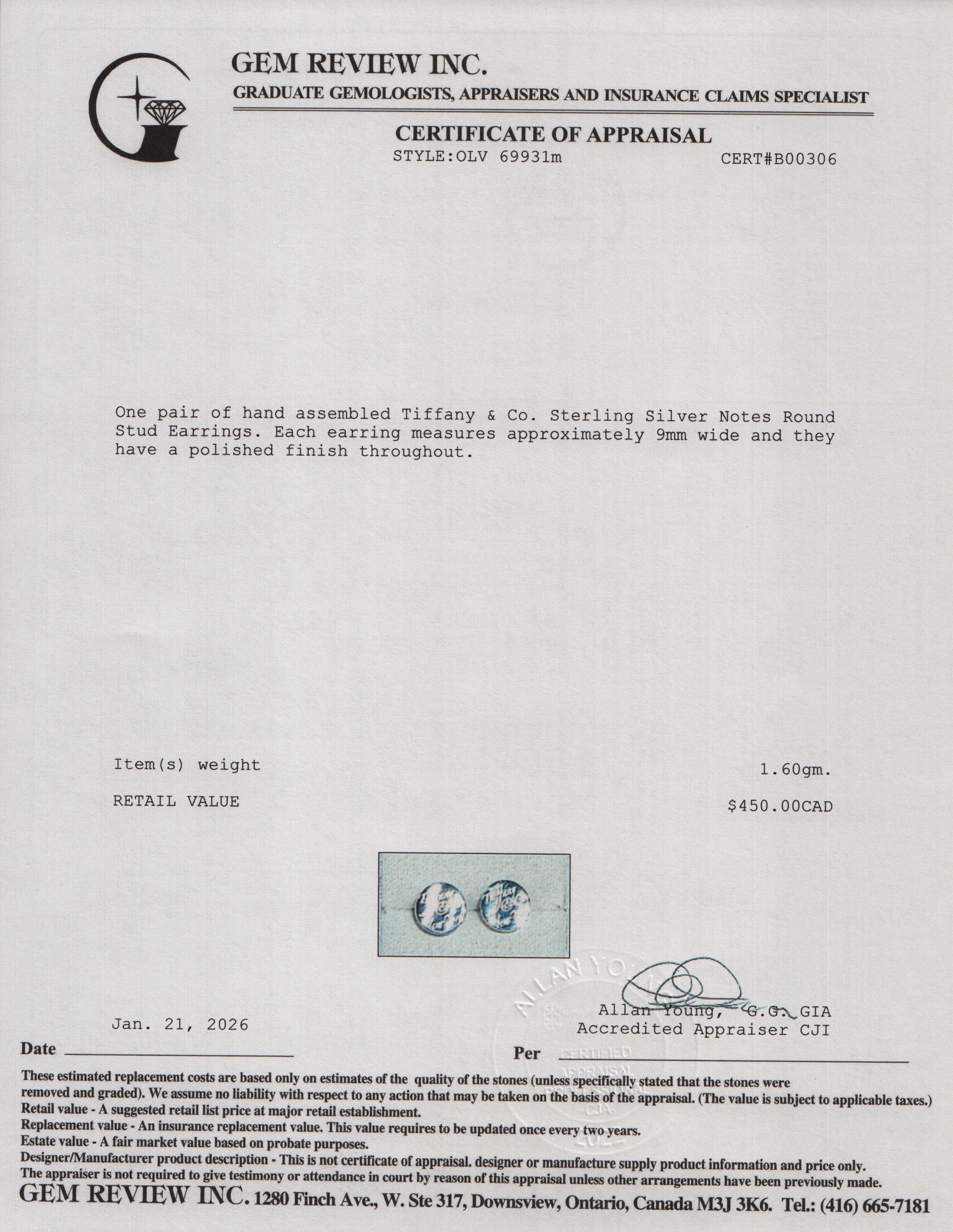 Sterling Silver Notes Round Stud Earrings, 9 MM