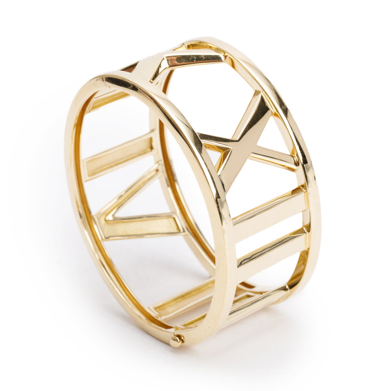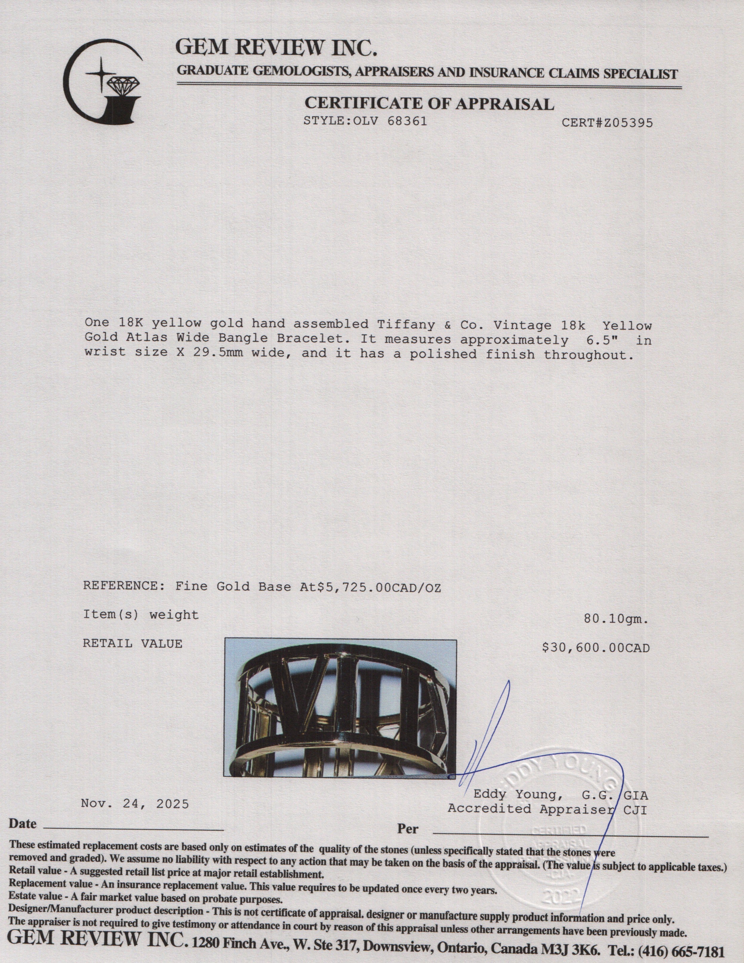Vintage 18k Yellow Gold Atlas Wide Bangle Bracelet w/ Box