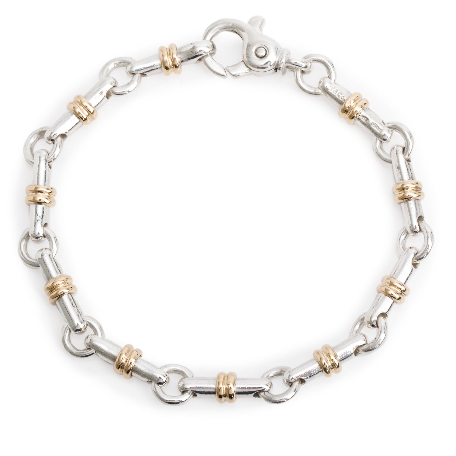 Vintage Sterling Silver & 18k Yellow Gold Bar Link Bracelet w/ Box