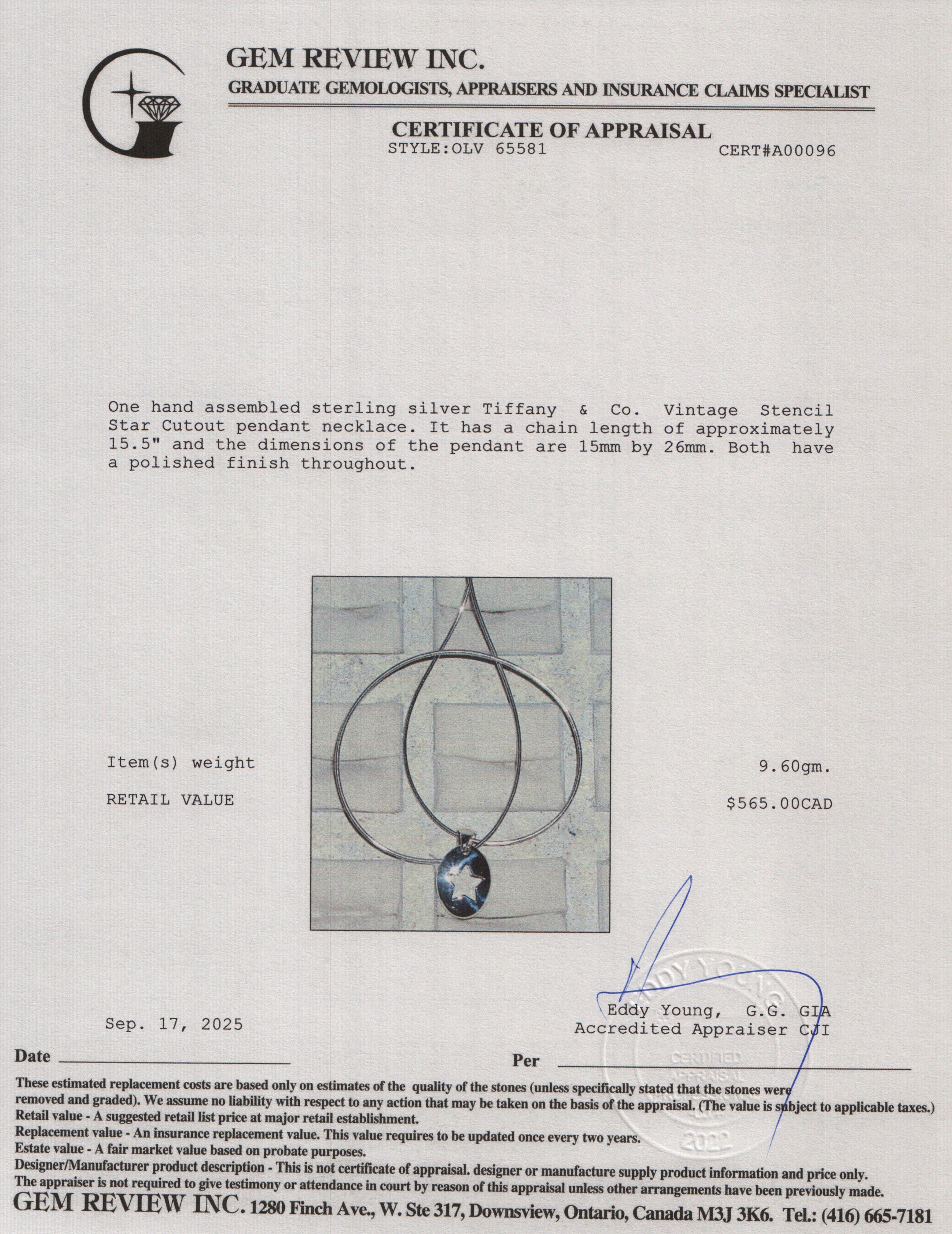 Vintage Sterling Silver Stencil Star Cutout Pendant Necklace