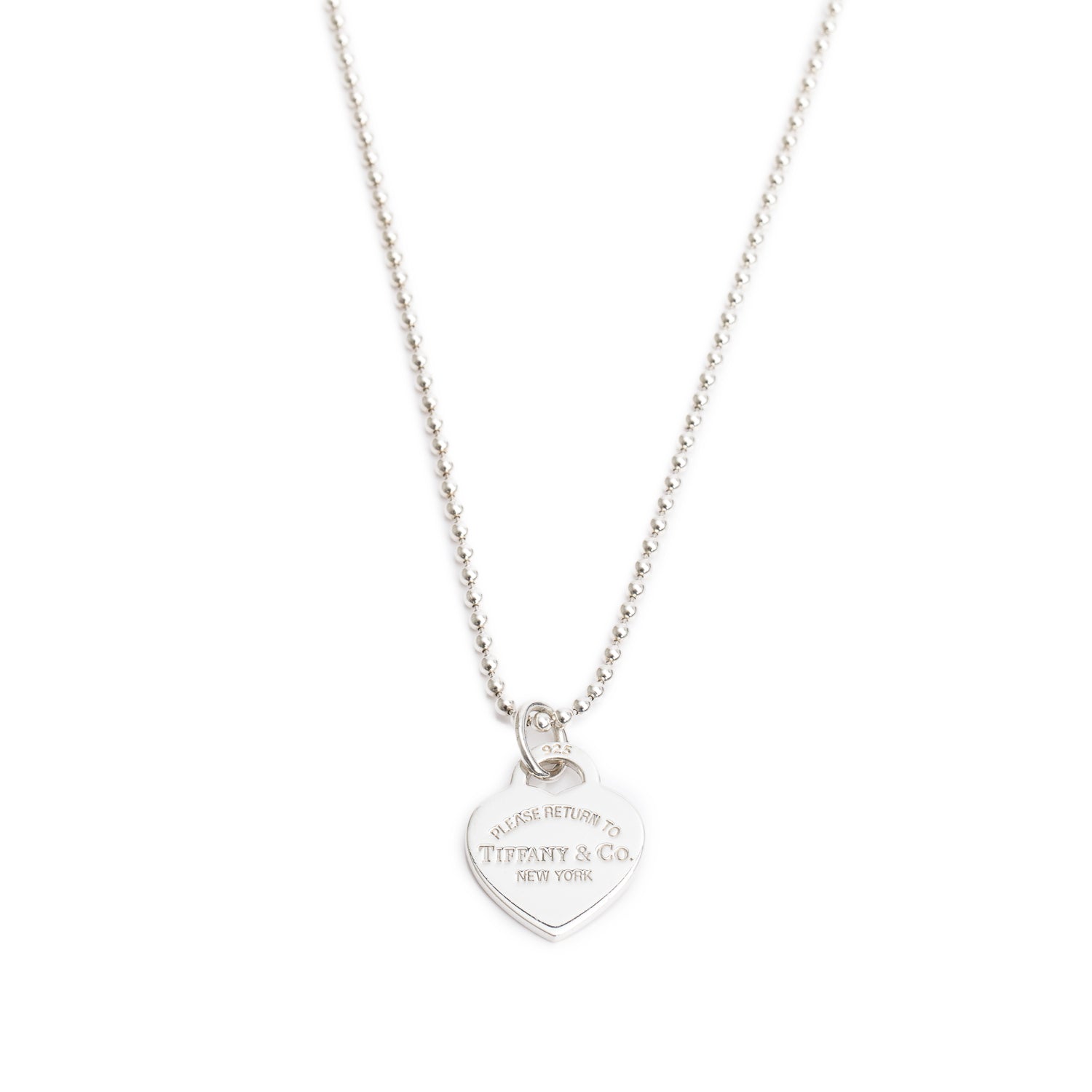 Sterling Silver Return to Tiffany Medium Heart Tag Pendant on Beaded Chain