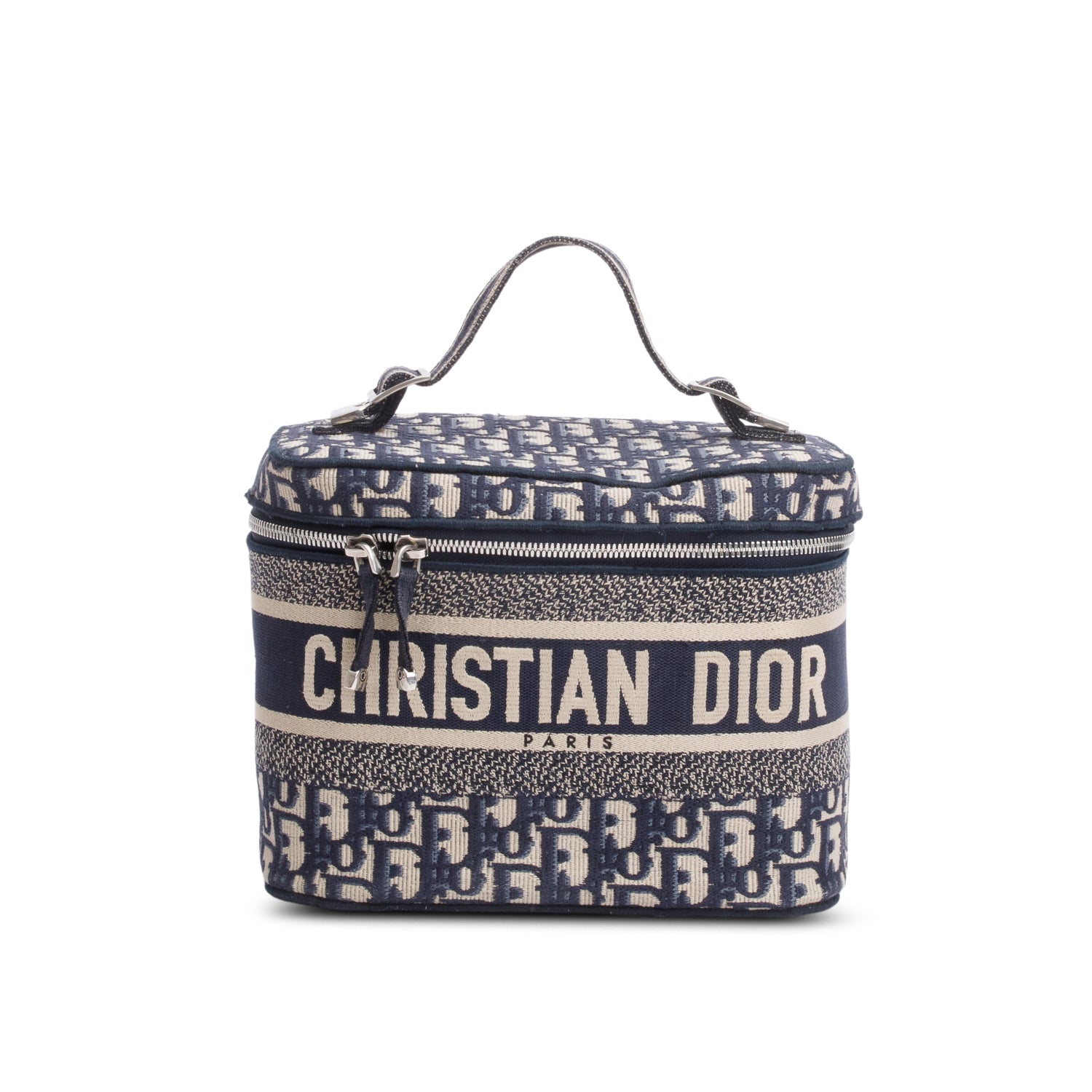 2020 Navy Oblique Embroidered DiorTravel Vanity Case w/ Authenticity Card
