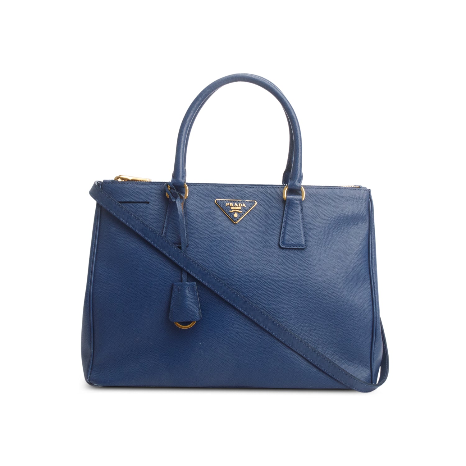 Blue Saffiano Lux Medium Double Zip Galleria Tote w/ Strap
