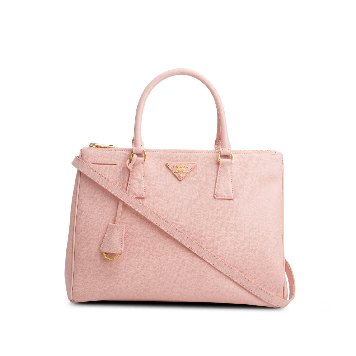Pink Saffiano Lux Medium Double Zip Galleria Tote w/ Authenticity Card & Strap