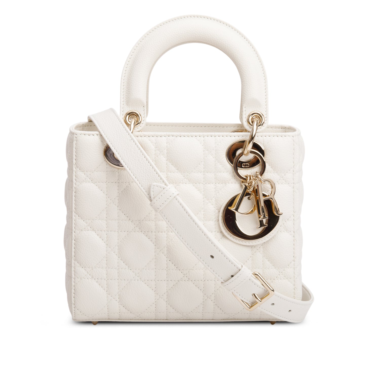 2024 White Grained Cannage Calfskin Leather Small Lady Dior Bag w/ Box & Strap