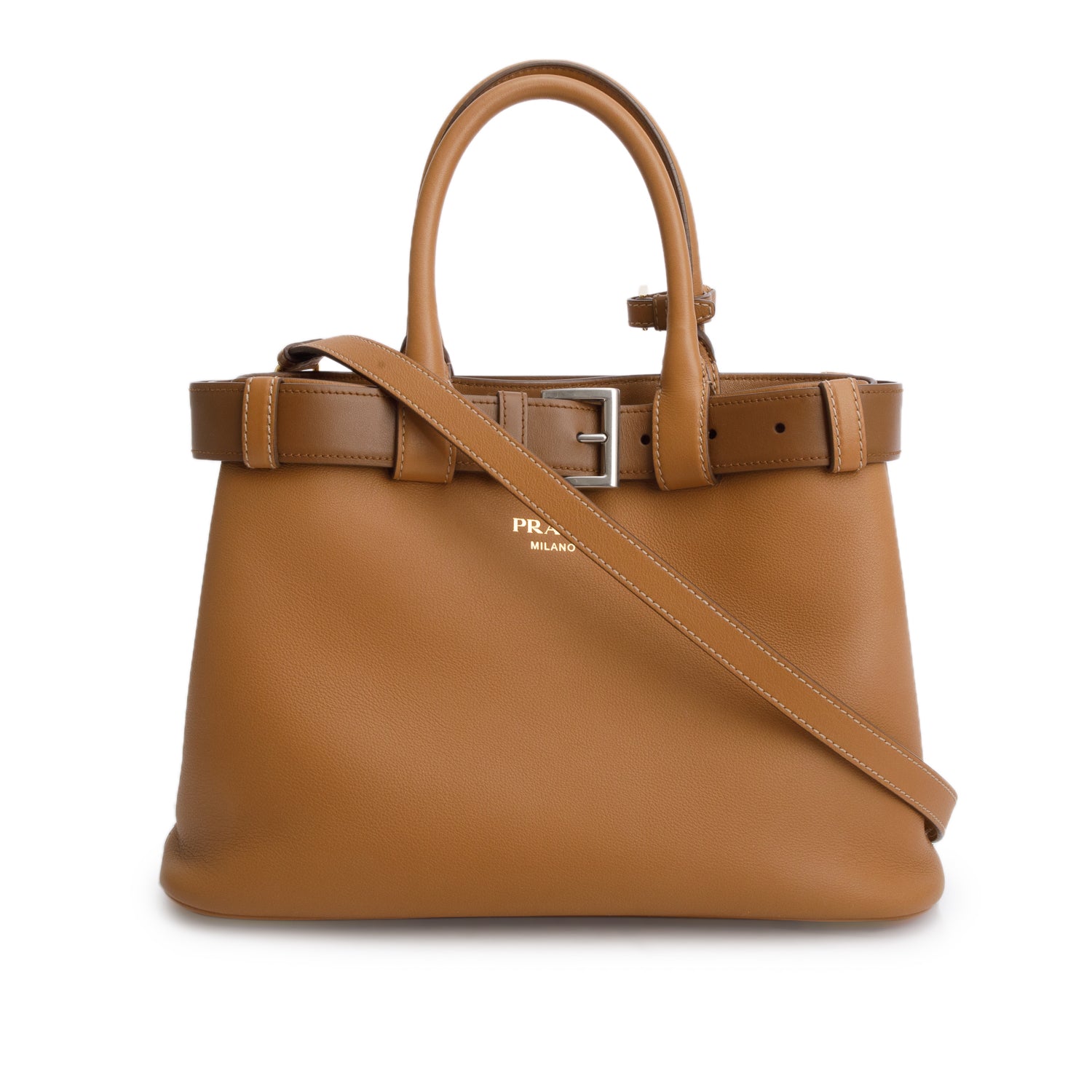 Brown Nappa Leather Small Buckle Handbag w/ Belt & Strap