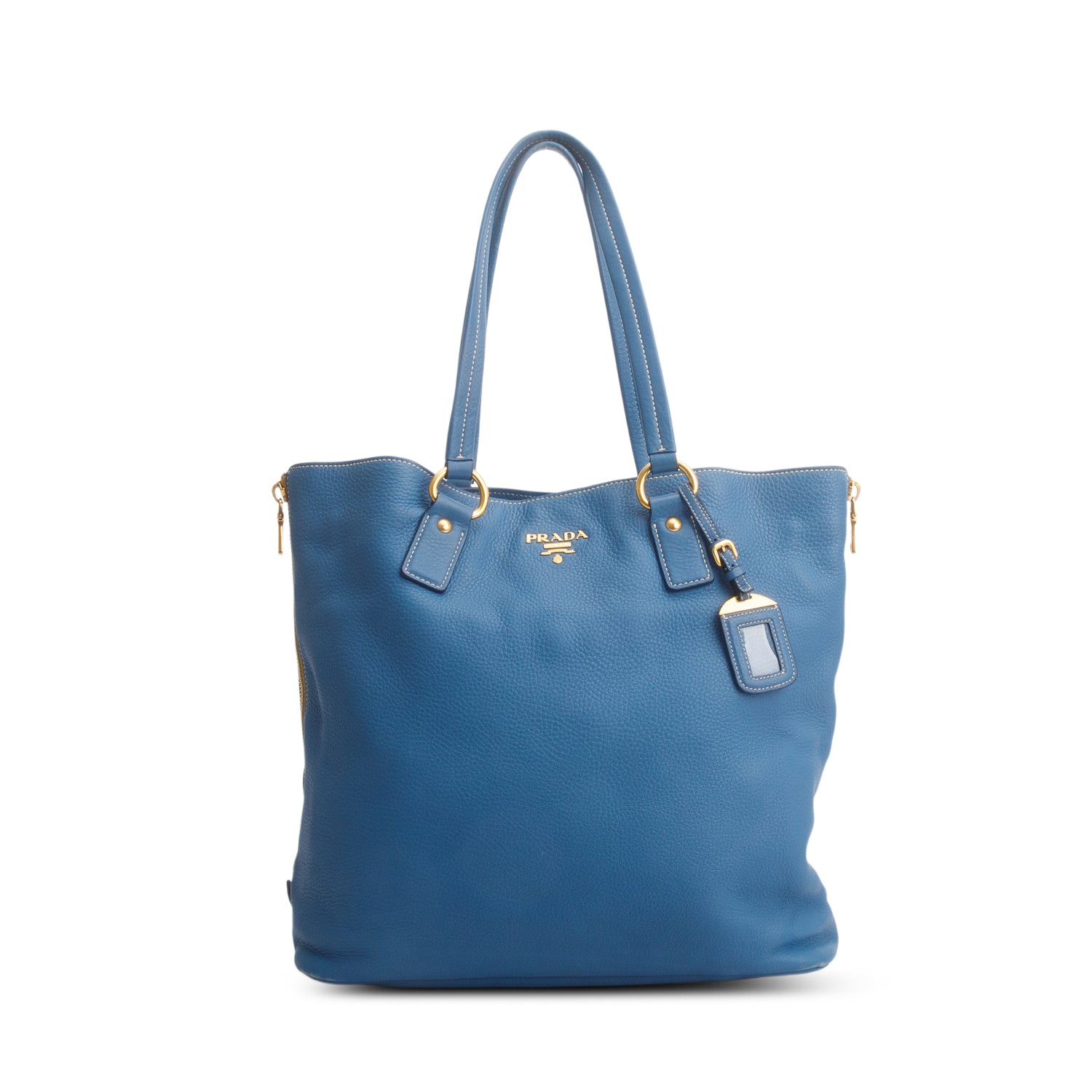 Blue Vitello Daino Size Zip Tote w/ Authenticity Card