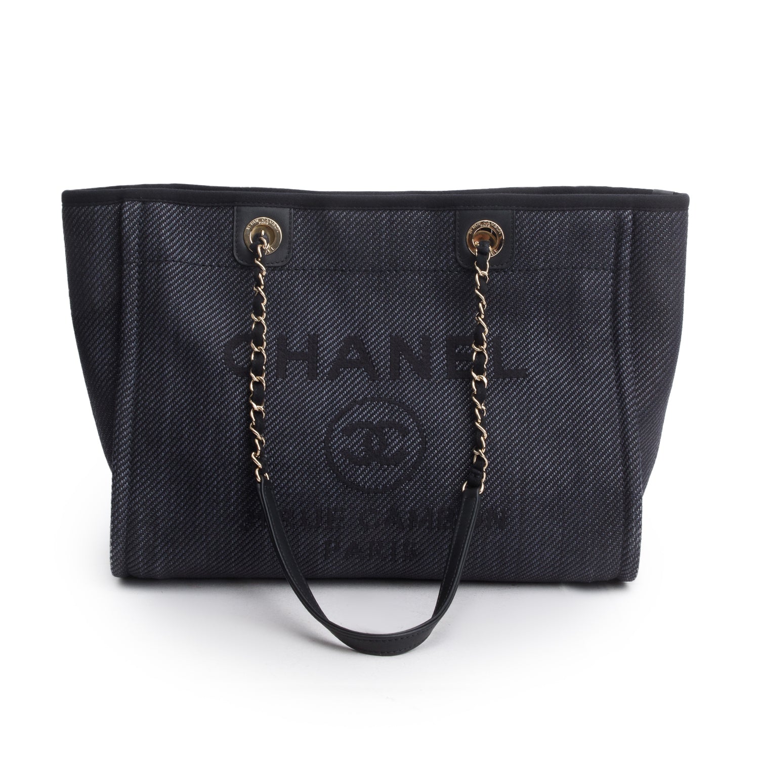 Navy Mixed Fibers Small Deauville Tote w/ Authenticity Card