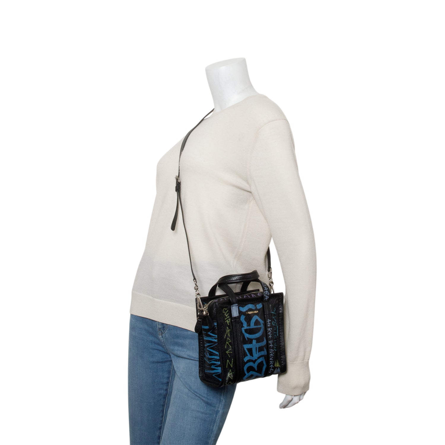 Agneau Leather Graffiti All Over XS Shopper Tote w/ Strap
