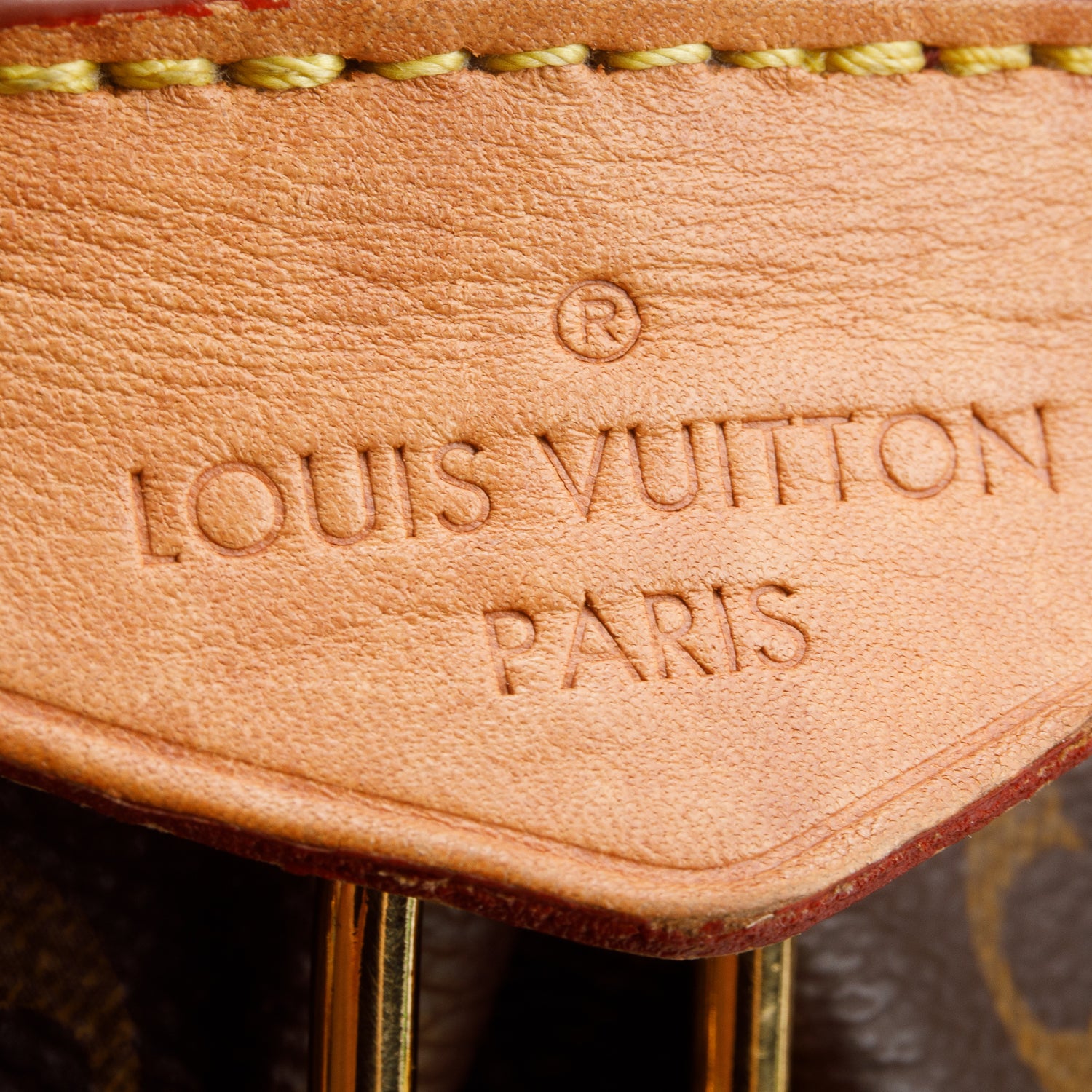 Condition: Very Good; slight marks and discoloration at vachetta tab and handles; slight creasing at strap and scratches at hardware; missing zipper pull tab.