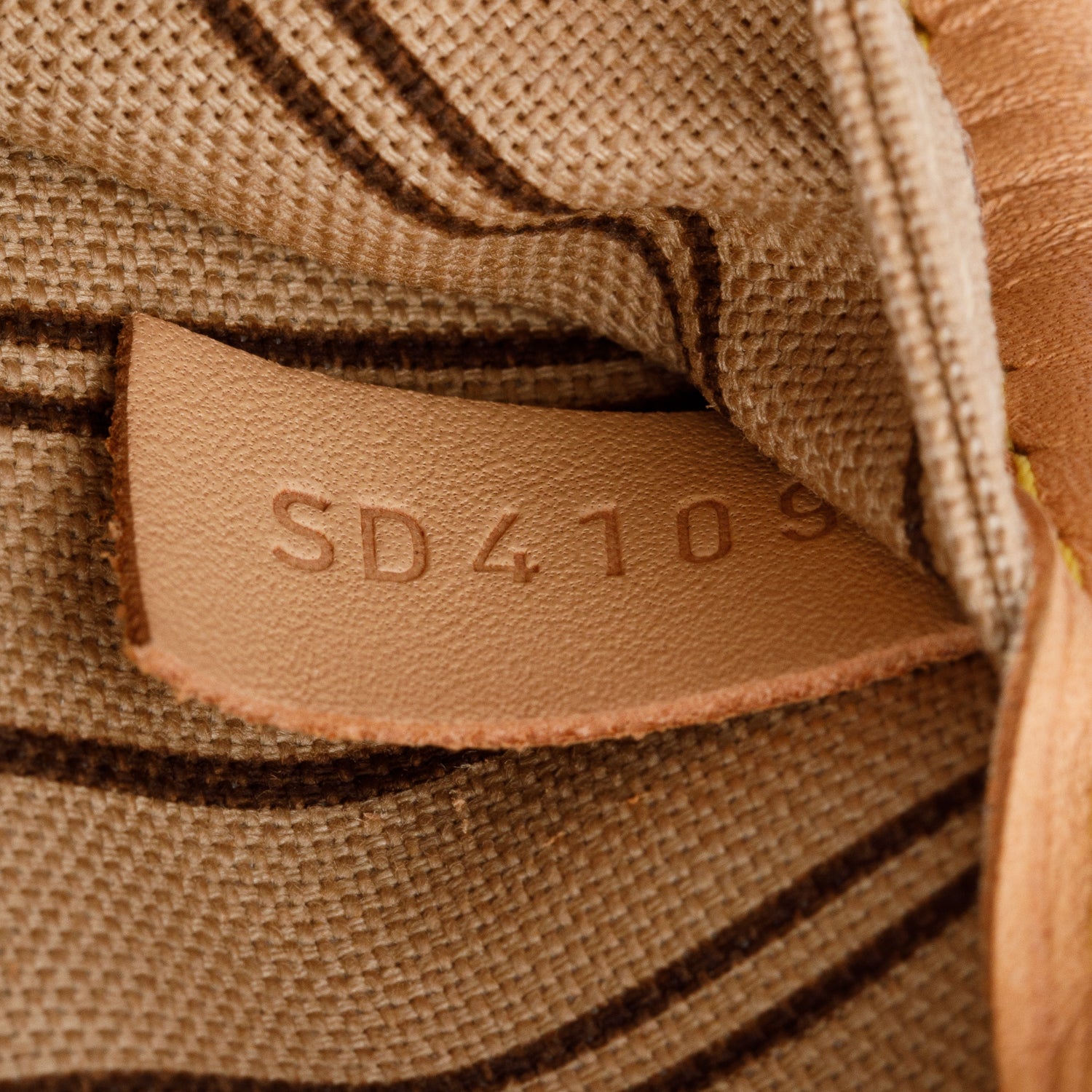 Condition: Very Good; slight creasing at leather trim, handles and pouch strap; initials 'K.K' hot stamped at exterior; minor marks at interior.