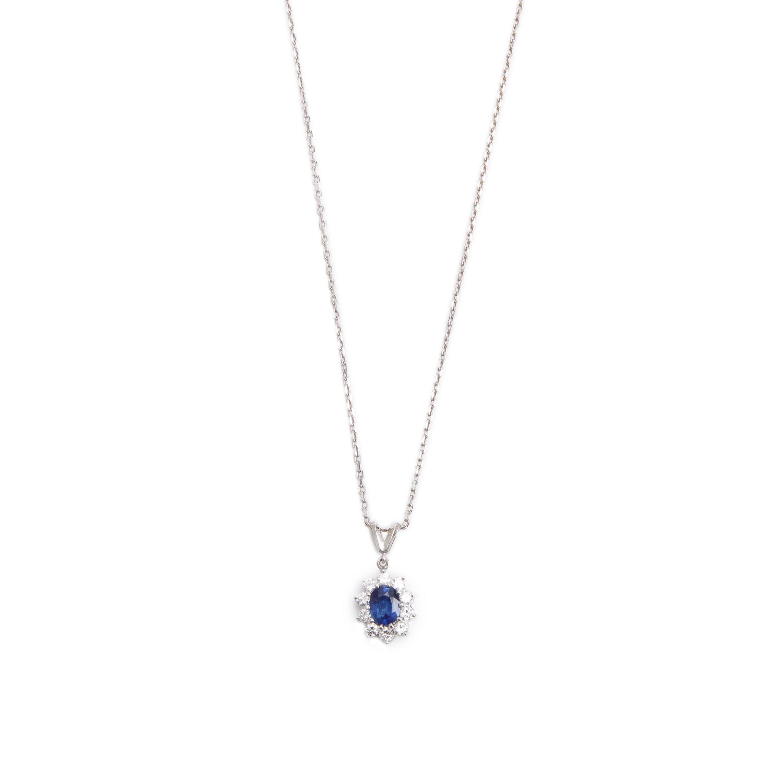14k White Gold Blue Sapphire and Diamond Pendant Necklace
