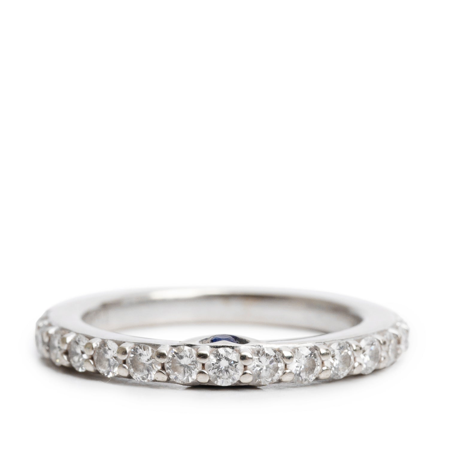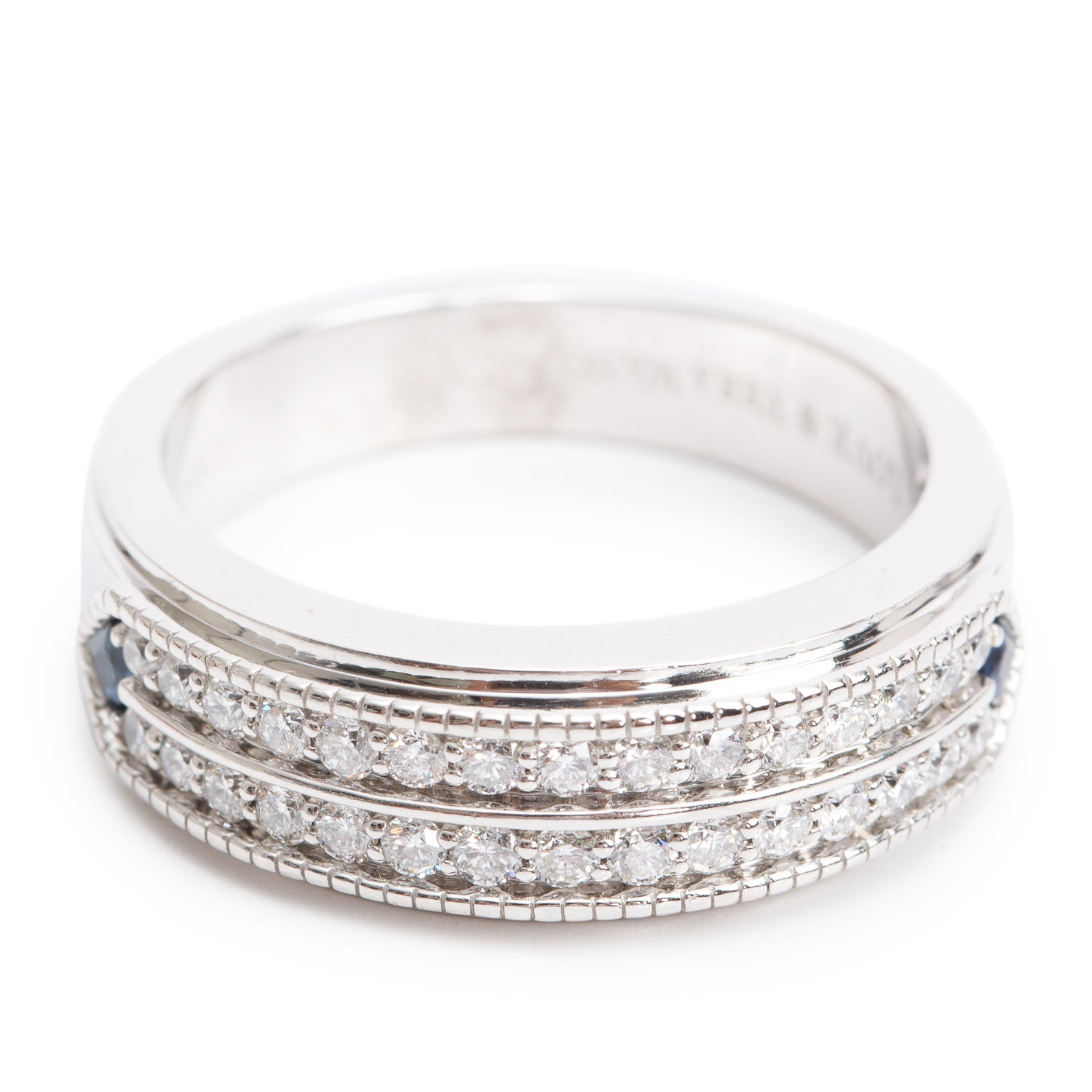 14k White Gold Diamond & Sapphire Band Ring, Size 8.75