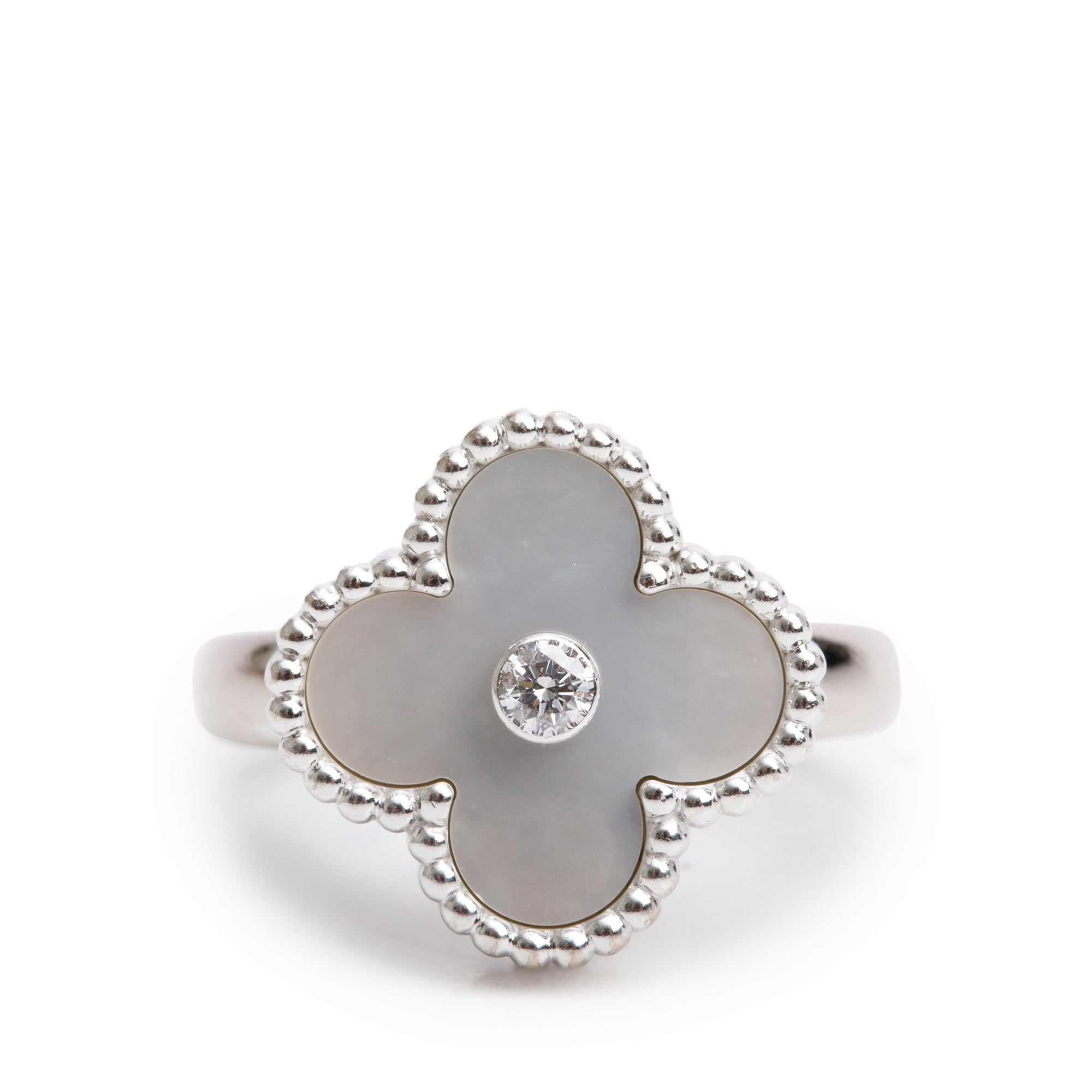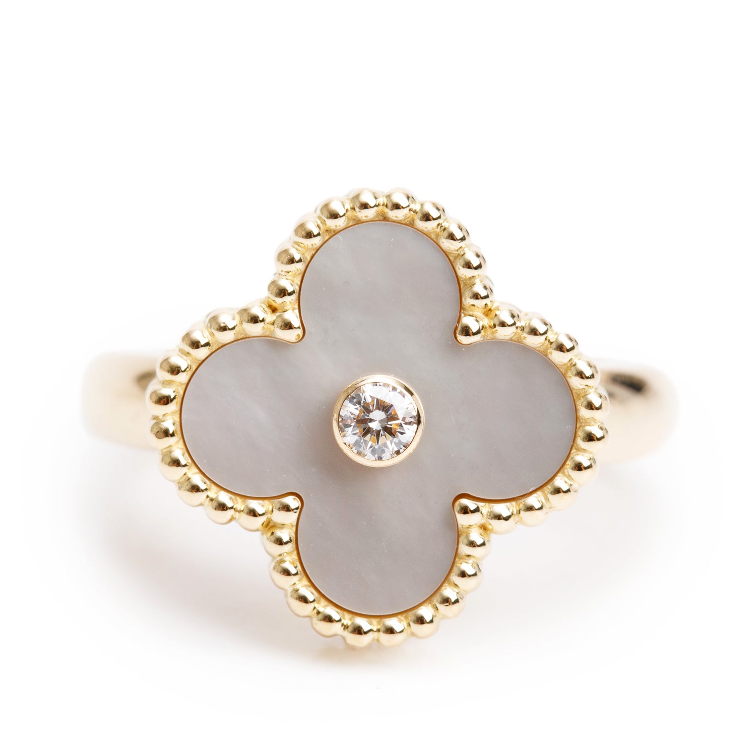 2023 18k Rose Gold Diamond Perlee Sweet Clovers Ring, Size 50 5.25 w/ Box & Certificate
