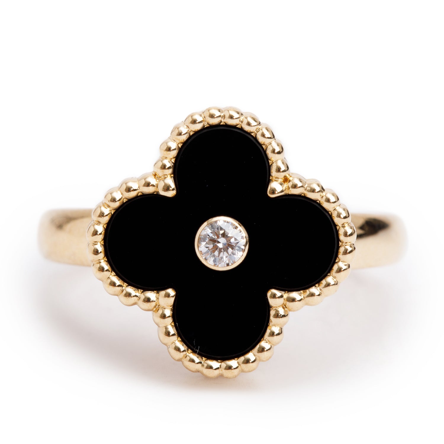 18k Yellow Gold Carnelian & Diamond Vintage Alhambra Ring, Size 49 5 w/ Box