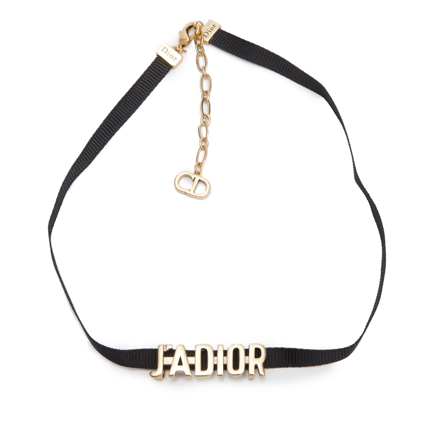 Gold Plated J'ADIOR Black Ribbon Choker Necklace